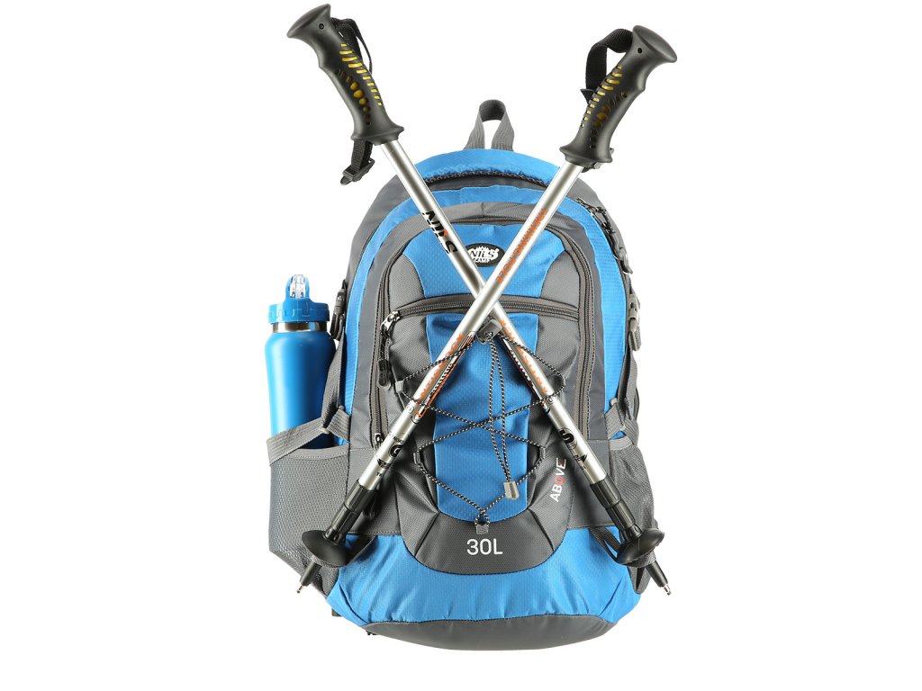 Model Above má celkem 3 přihrádky o celkovém objemu 30 litrů. Velká hlavní přihrádka se otevírá pomocí dvoucestného zipu, je dostatečně velká, aby se do ní vešly všechny věci potřebné například na celodenní výlet s dětmi, a navíc je vybavena polstrovanou kapsou na notebook nebo tablet. Do prostřední přihrádky se vejdou dokumenty a složky až do velikosti A4. Přední přihrádka je určena pro menší předměty, jako je peněženka nebo mobilní telefon. Na bocích batohu jsou další 2 přihrádky, do kterých se vejde například láhev na vodu; delší předměty lze navíc upevnit pomocí popruhů s přezkou. Poutka na bocích slouží k připevnění turistických holí.