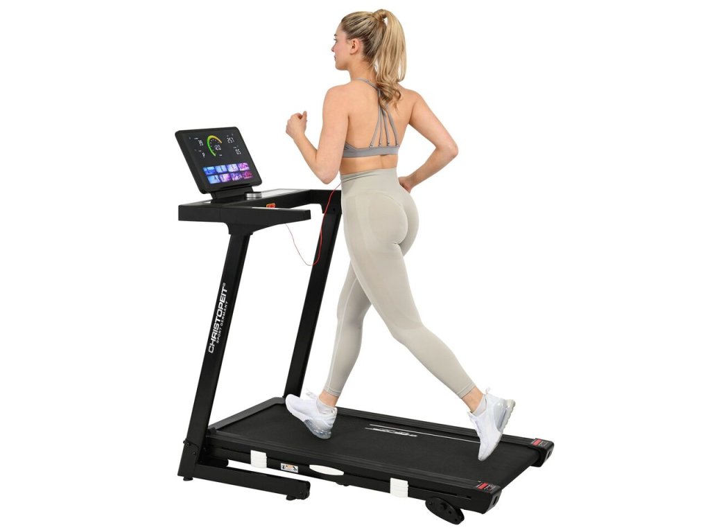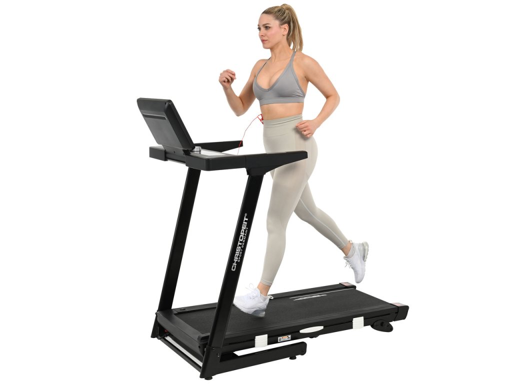 Velkorysá běžecká plocha o rozměrech 120 × 45 cm poskytuje dostatek prostoru pro komfortní trénink. Běžecký pás je kompatibilní s aplikacemi Christopeit Connect, FitShow a Kinomap, které umožňují rozšířený tréninkový zážitek prostřednictvím chytrého telefonu nebo tabletu. O příjemnou atmosféru během cvičení se postarají integrované Bluetooth reproduktory, které zajistí kvalitní hudební doprovod.