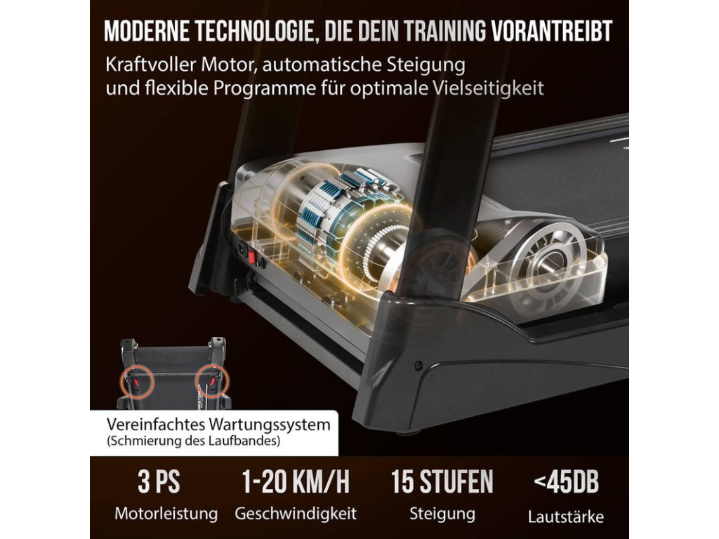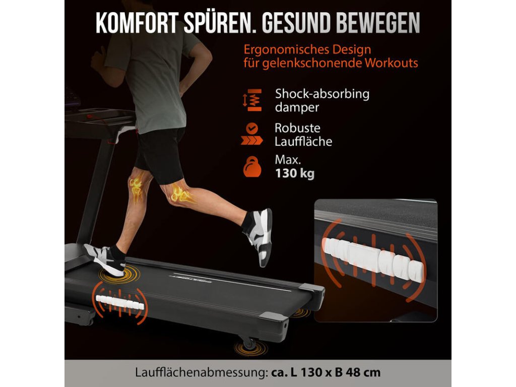 Výkonný motor o výkonu 3 HP zajišťuje plynulou a stabilní jízdu i při vyšších rychlostech, zatímco nosnost až 130kg garantuje odolnost a stabilitu. Tento běžecký pás je navržen pro pravidelný domácí trénink, který je efektivní, komfortní a bezpečný.