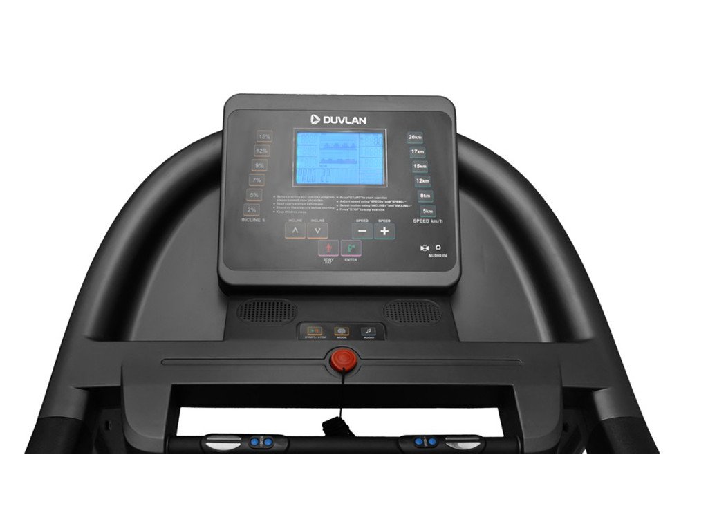 Celkově zlepšuje stav kardiovaskulární soustavy a kondice. Tento motorový běžecký pás nabízí dostatek komfortu pro plnohodnotný trénink. Vyniká zejména velkou odpruženou plochou s možností zatížení až 140 kg, tichým a výkonným motorem s rychlostí až 20km/h. Dokonalý LCD displej, který obsahuje 27 programů, Vám umožňuje vybrat ten správný program. Běžecká plocha je sklopná a tím máte možnost snadného uskladnění. Je vhodný pro všechny, od začátečníků až po nejnáročnější uživatele. S běžeckým pásem DUVLAN Giyon se stane Vaše cvičení nezapomenutelné.
