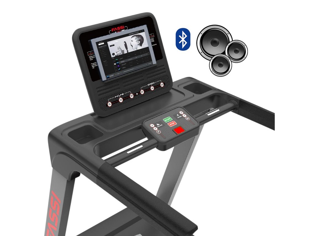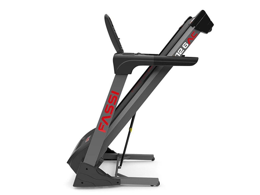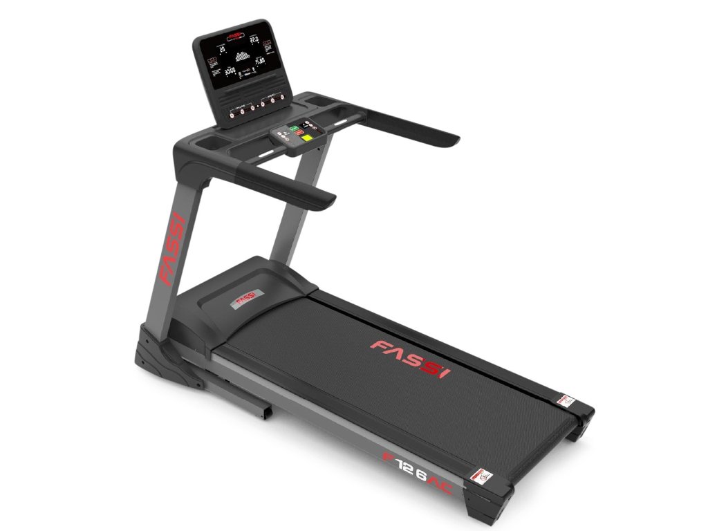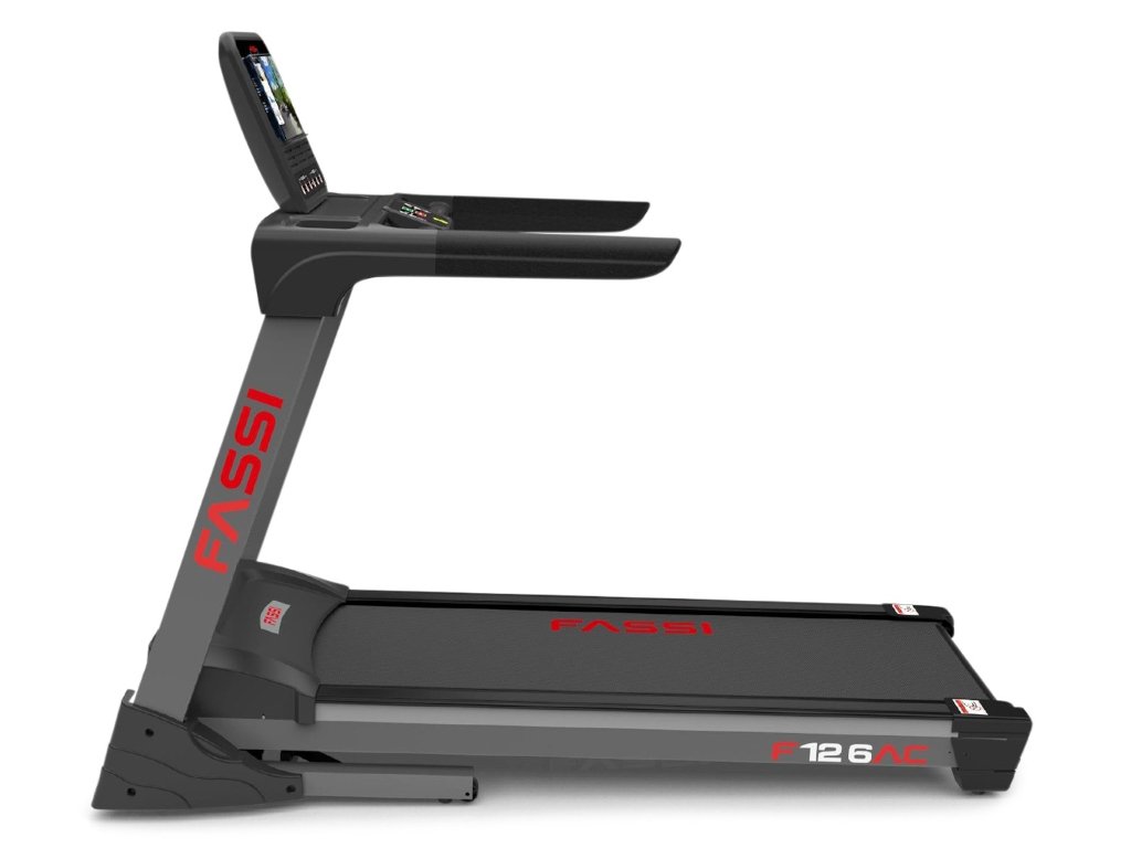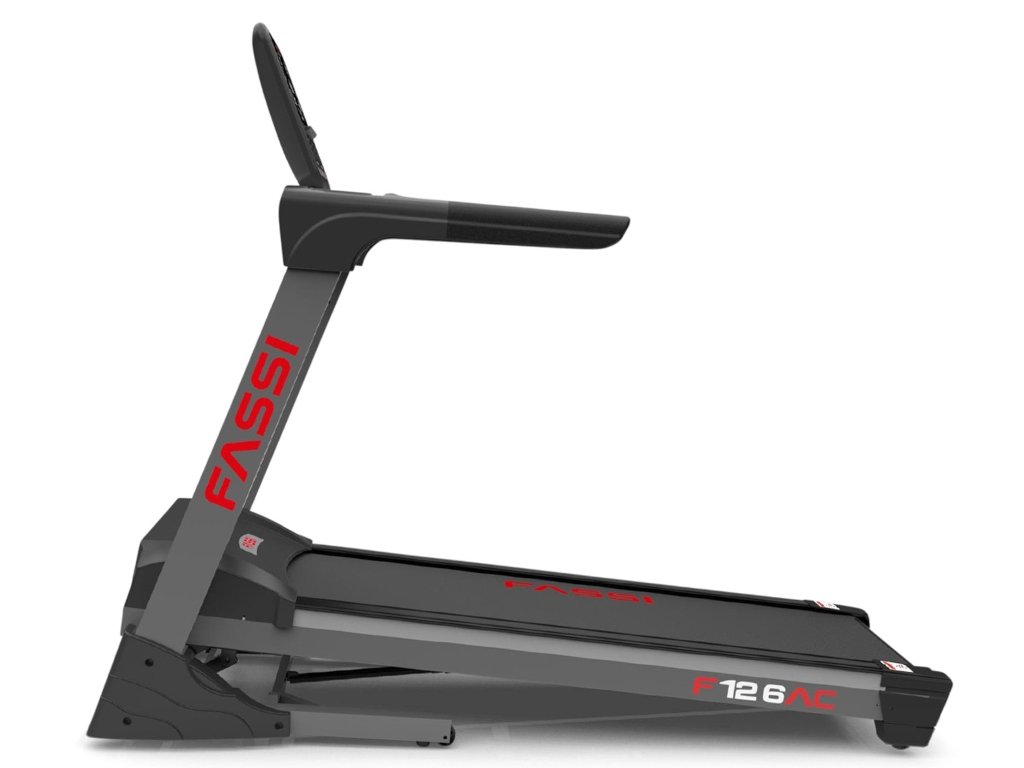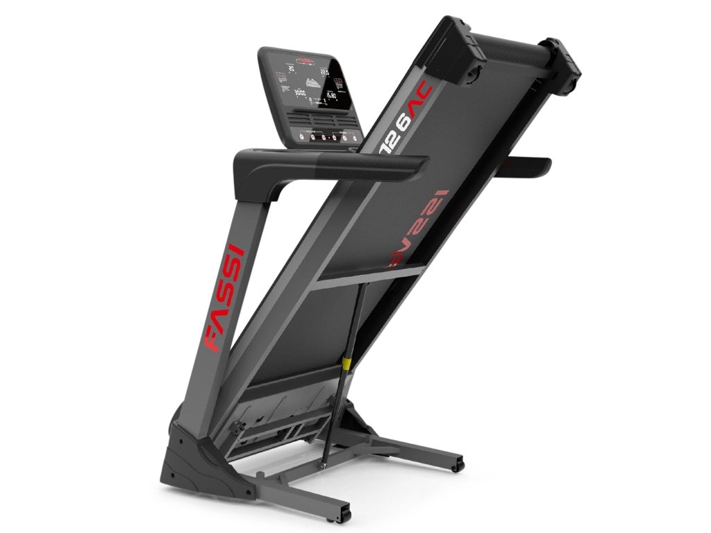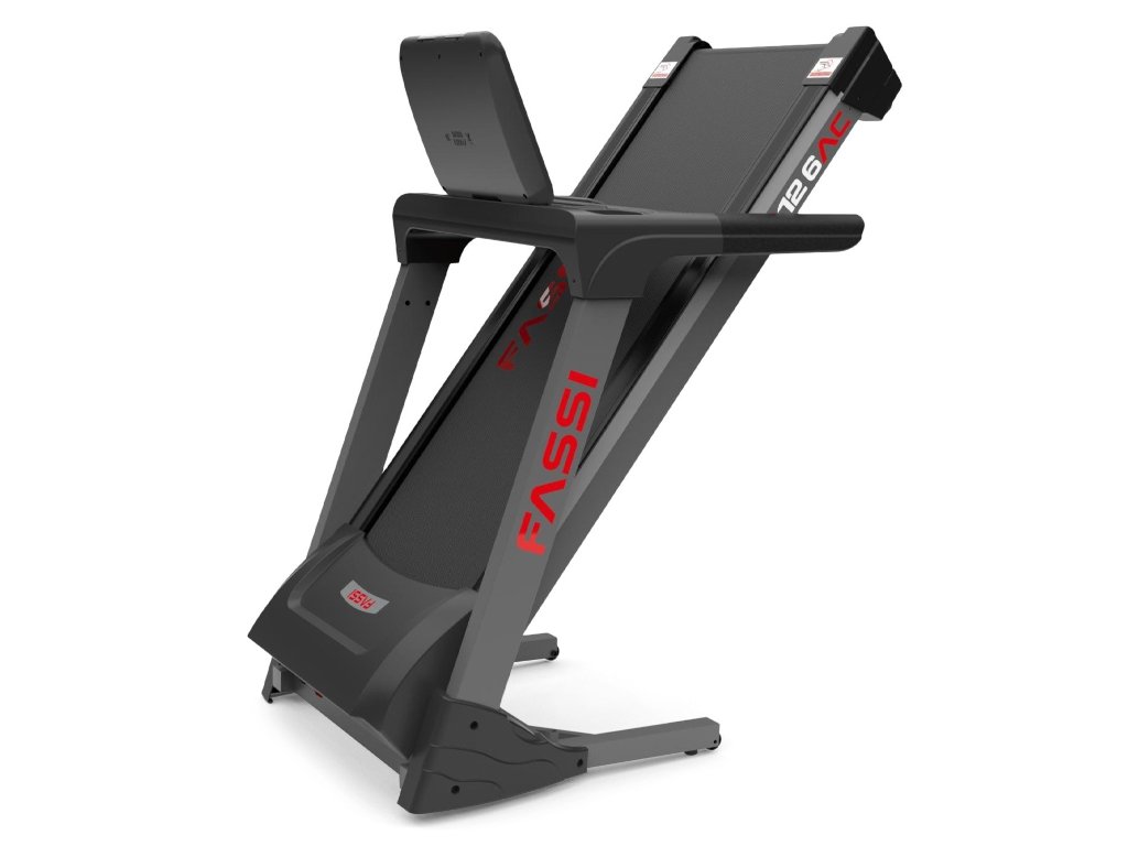 Pro pohodlí a funkčnost je běžecký pás Fassi 12.6 AC vybaven držákem na tablet, vestavěnými reproduktory pro optimální zábavu a tlačítky rychlého přístupu pro rychlost a sklon na počítači i na madlech. Inteligentní design zahrnuje skládací konstrukci šetřící prostor a hydraulické skládání s podporou motoru pro snadnou manipulaci a skladování. Systém odpružení běžecké plochy s 8 dvojitými elastomery zaručuje cvičení s nízkým dopadem, chrání klouby a zvyšuje pohodlí při používání.