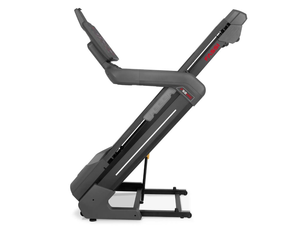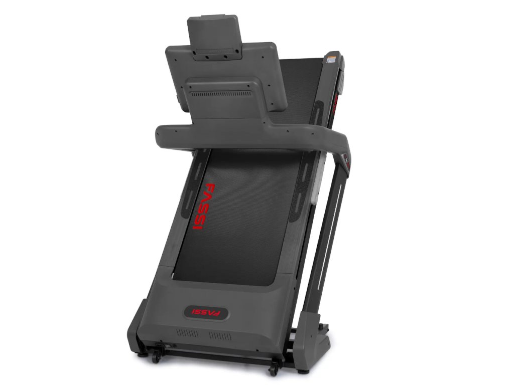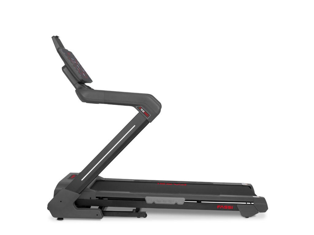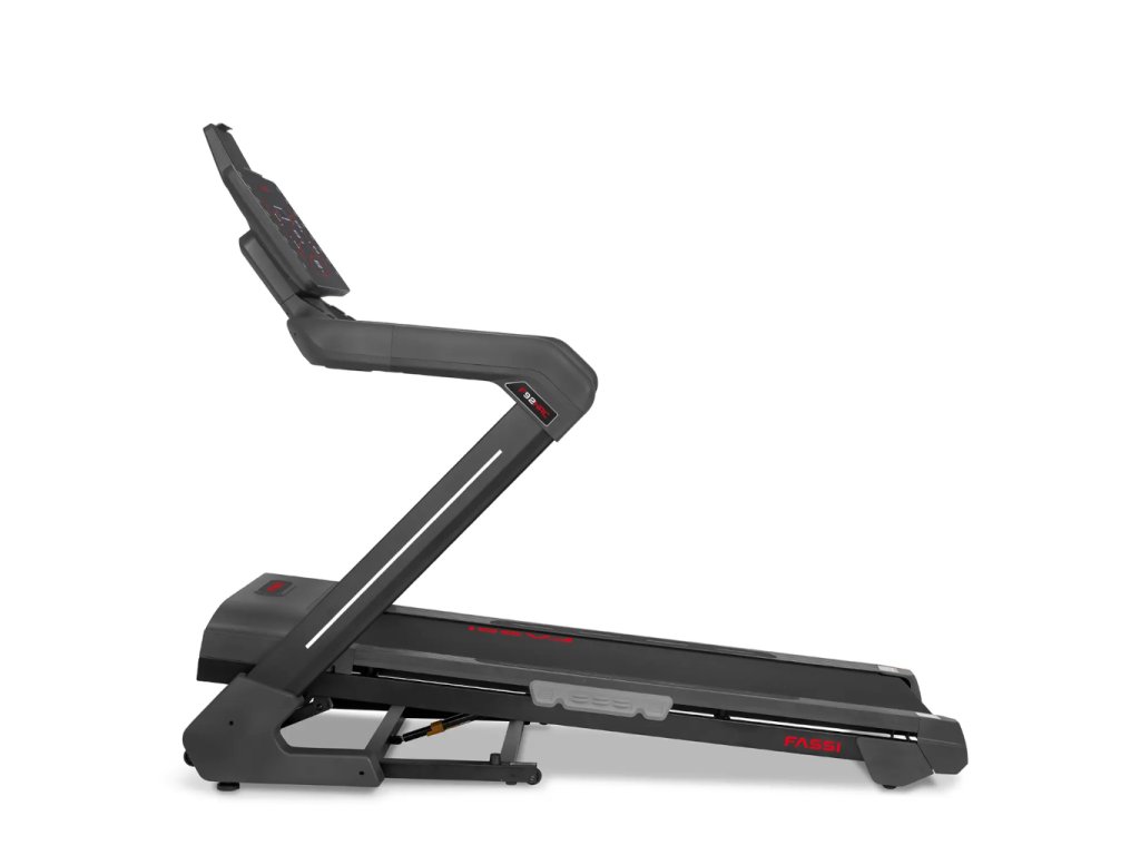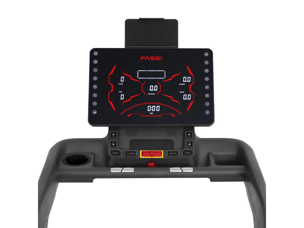 Běžecký pás Fassi F 9.2 HRC je navržen pro intenzivní a náročné tréninky, vybavený silným 4 HP motorem, který dosahuje rychlosti až 22 km/h. Elektronický sklon do 15% umožňuje realistickou simulaci běhu do kopce a zvyšuje tréninkovou zátěž. Nabízí 73 programů včetně 3 HRC režimů a 64 přednastavených kombinací rychlosti a sklonu. Prostorná běžecká plocha o rozměrech 53 × 150 cm poskytuje pohodlí a jistotu při běhu. Díky integrovanému Bluetooth a kompatibilitě s aplikacemi FitShow, Kinomap a Zwift můžete sledovat výkon a zapojovat se do virtuálních výzev. Podsvícený LED displej spolu s dodávaným hrudním pásem zajišťují přesné měření tepu. Skládací mechanismus s elektrickým ovládáním a 8-elastomerní odpružení snižují nárazy na klouby a usnadňují uskladnění.