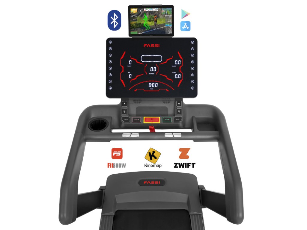 Díky podpoře aplikací Zwift, Kinomap a FitShow se běžecký pás stává branou do virtuálního světa – soutěžte, překonávejte rekordy a objevujte tratě z celého světa, aniž byste opustili svůj domov.