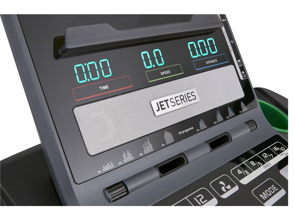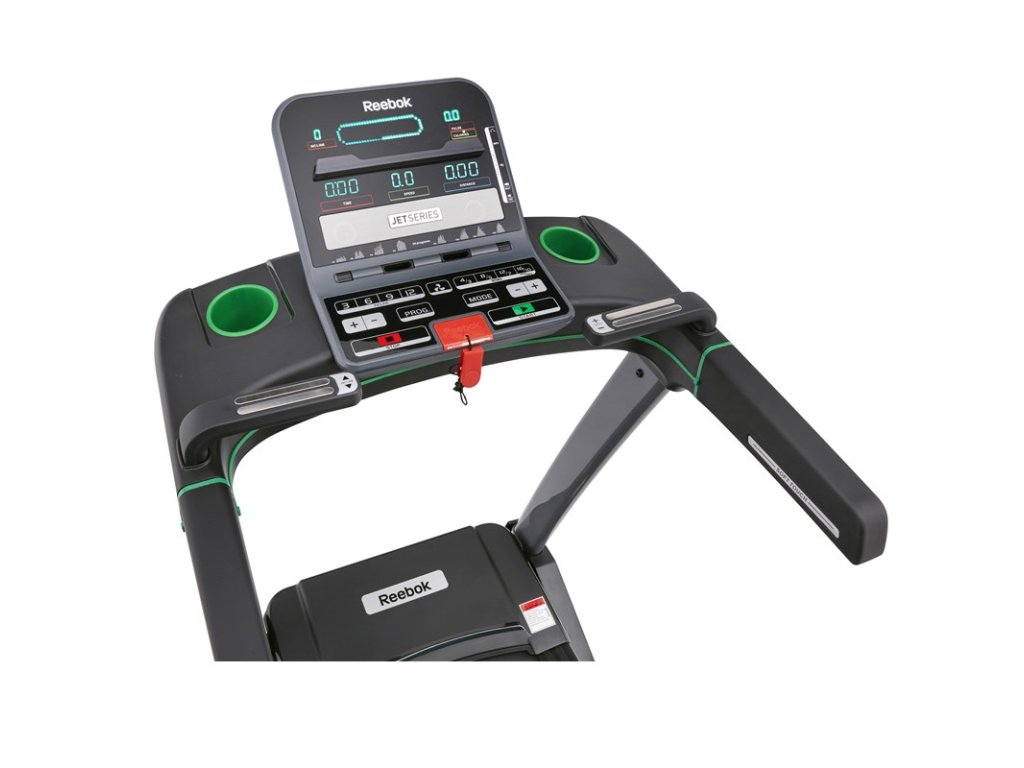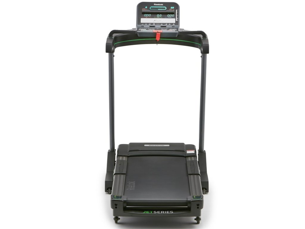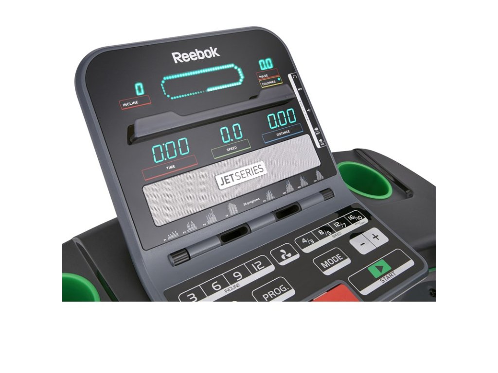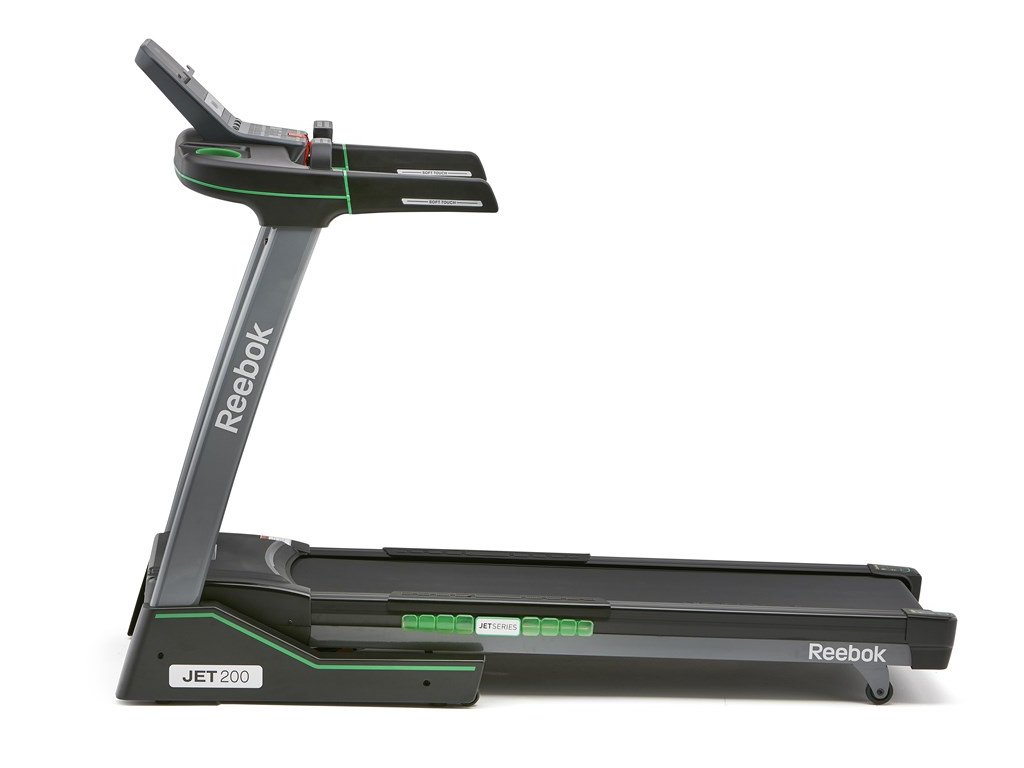 Reebok Jet 200 je běžecký pás, který uspokojí všechny schopnosti s funkčností pro intervalové, stoupání a stabilní kardio cvičení. Běžecká plocha o rozměrech 140 x 46 cm obsahuje technologii pohybu vzduchu, která snižuje vliv na vaše klouby a pomáhá předcházet zraněním. S motorem s výkonem 2,25 HP může Jet 200 pracovat při 18 km / h na všech 15 úrovních elektronického sklonu. Jet 200 má sklopnou běžeckou plochu s měkkým poklesem a kompatibilitu s mp3.