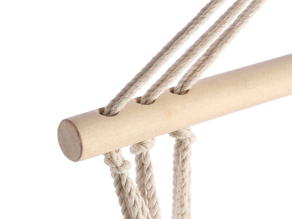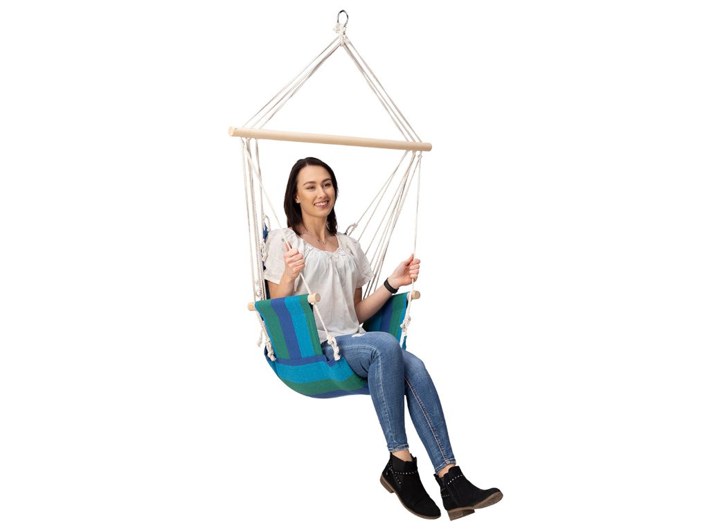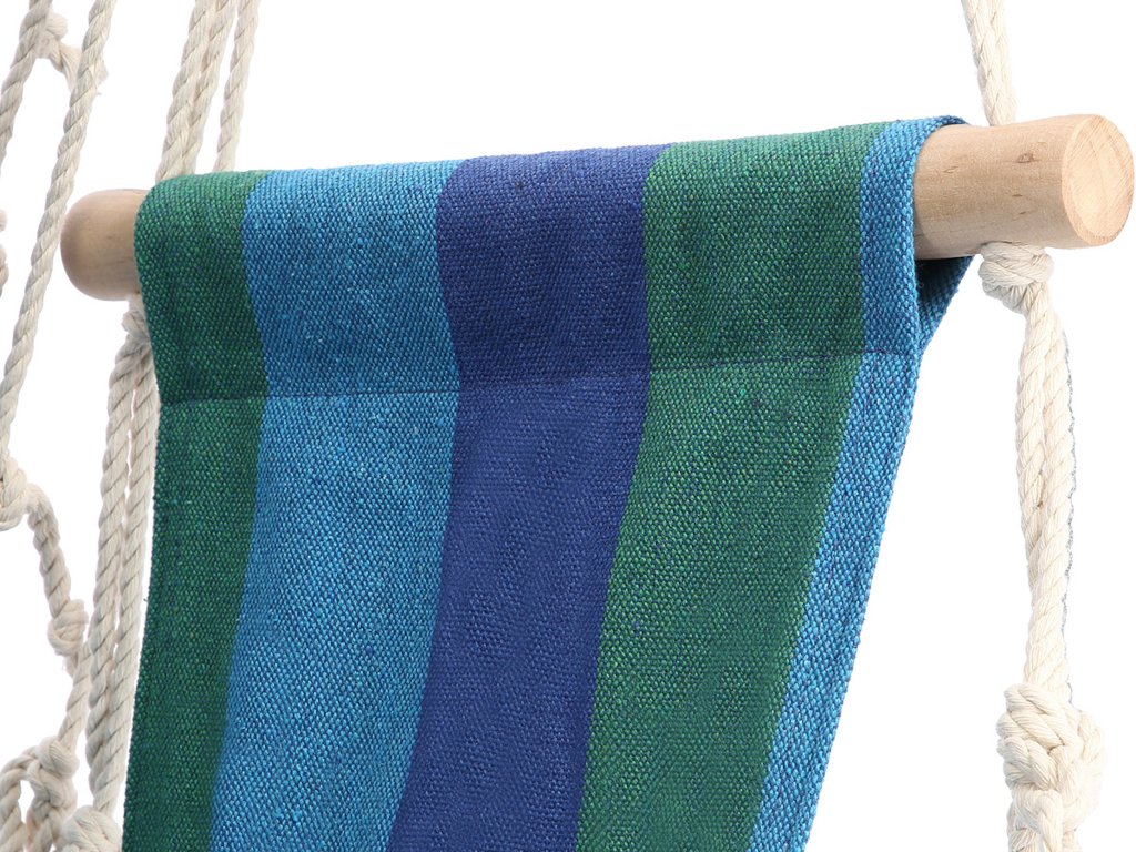 Design brazilského křesla vychází z houpací sítě. Textilní část je vyrobena z plátna T/C (kombinace polyesteru a bavlny), které je pomocí jednotlivých lan vytvarováno do tvaru židle. Lana přecházejí přes dřevěnou příčku a sbíhají se do visícího oka. Stačí křeslo rozbalit, zavěsit ho kdekoli ve vhodné výšce a můžete relaxovat například při čtení oblíbené knihy. Model NC3102 má také praktické područky. Použité materiály zajišťují nejen prodyšnost a pohodlí židle, ale také její dlouhou životnost a odolnost.