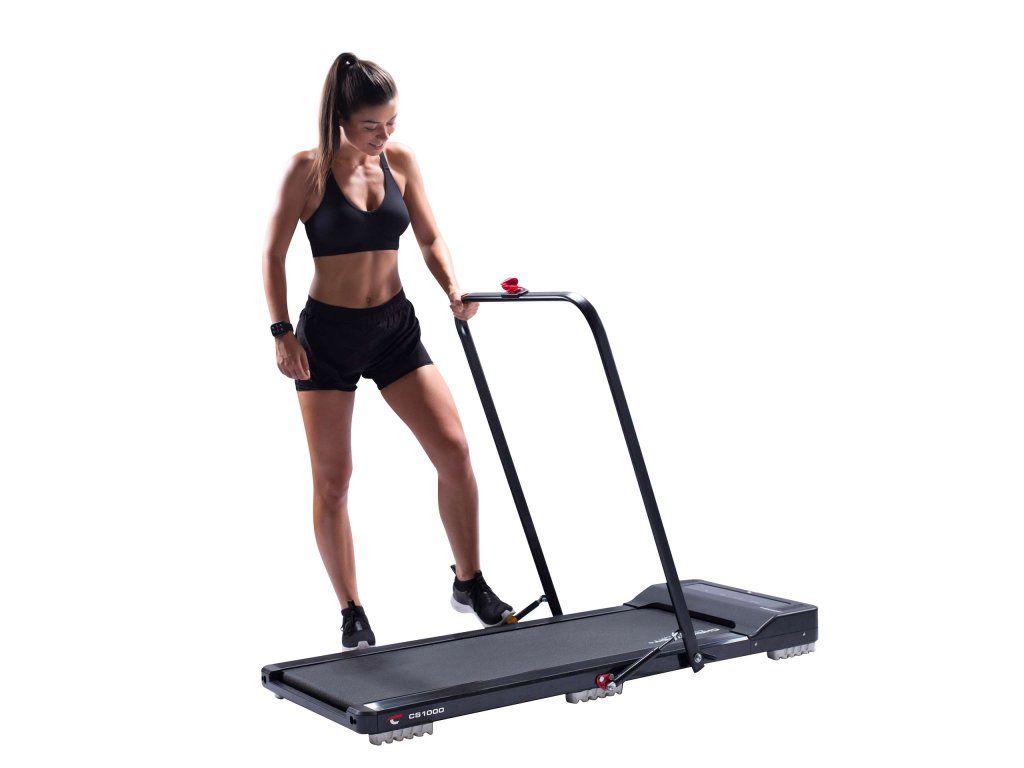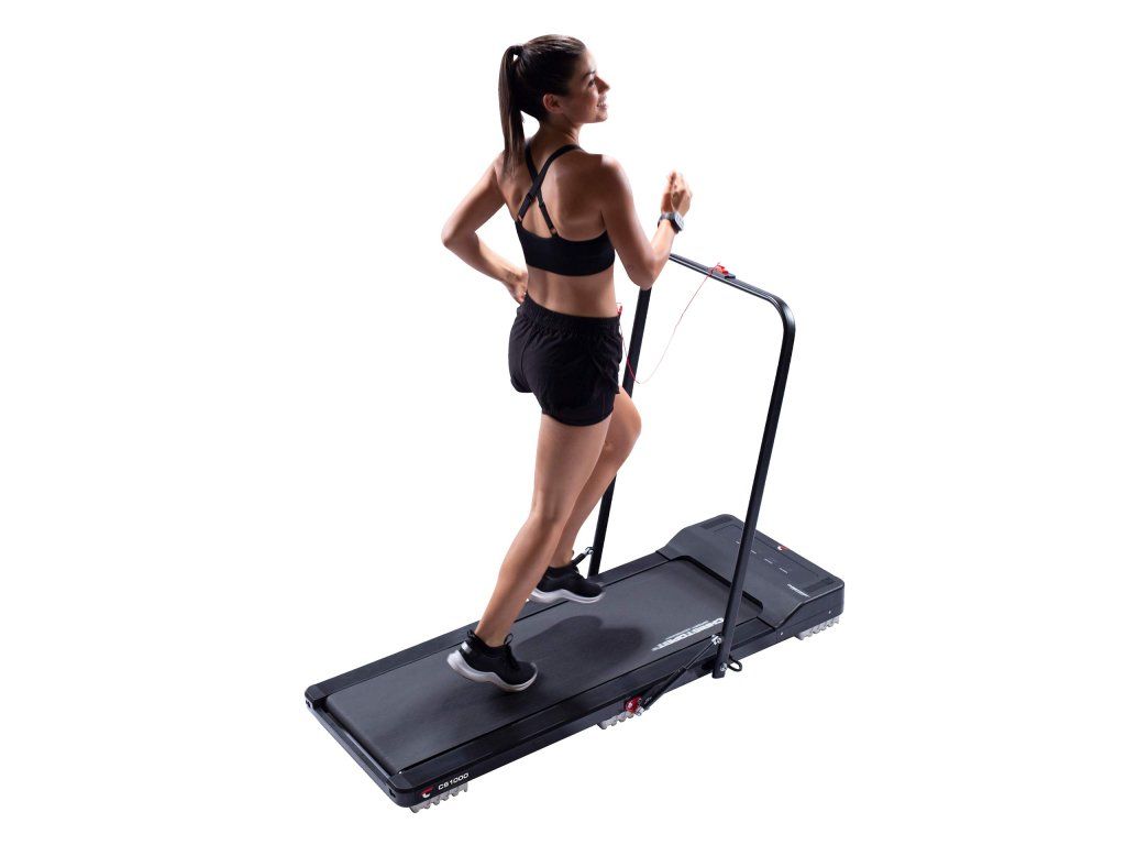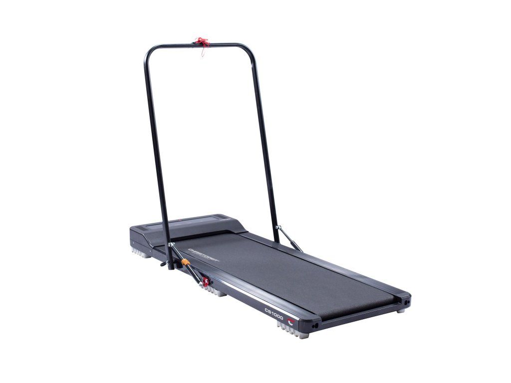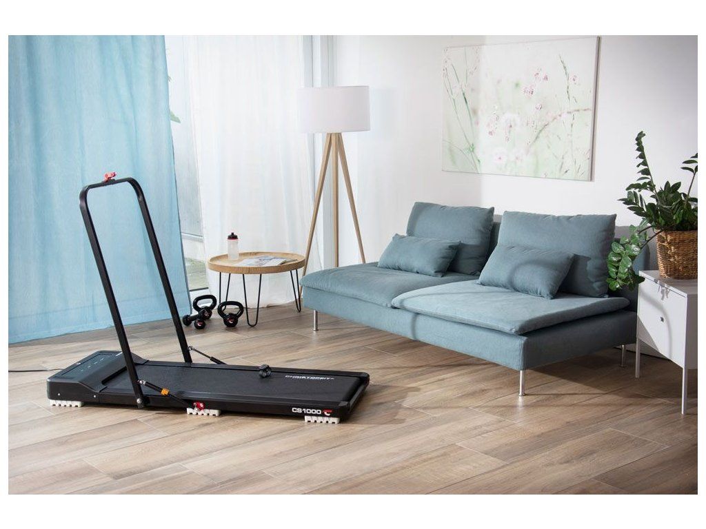 Běžecký pás lze postavit nebo složit bez větší námahy a lze jej po použití snadno složit a ušetřit místo. S výškou 13 cm lze složit ultraploše a lze ji tedy uskladnit téměř kdekoli. CS 1000 je proto ideální i pro domácnosti s malým prostorem.