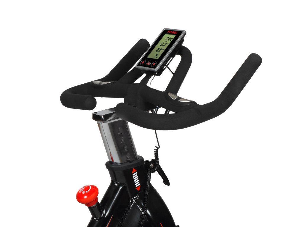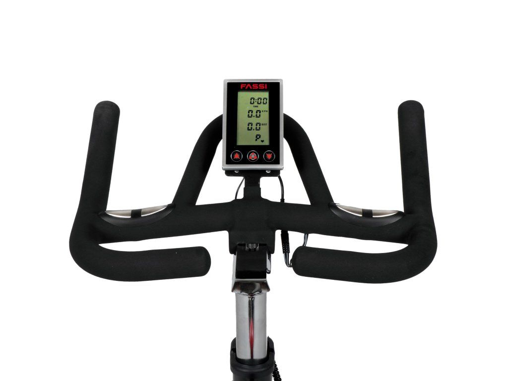 Tento cyklotrenažér Fassi Pro 24F má řemenový pohon, který poskytuje hladký a tichý chod. Je vybaven bezdrátovým přijímačem na sledování srdečního tepu, který je možné sledovat ručním pulzním snímačem. Počítač efektivně zobrazuje funkce času, vzdálenosti, spálených kalorií, rychlosti a pulzu. Vysoká kvalita tohoto cyklotrenažéru Fassi F 24 Pro je také spojena s jeho vynikající ergonomií a různými možnostmi úprav: řidítka a sedadlo, ve skutečnosti můžete nastavit jak horizontálně, tak vertikálně, abyste se cítili při cvičení pohodlně. Transportní kolečka usnadní přepravu, takže bez větší námahy si můžete měnit místo Vašeho cvičení. Nenechte si ujít mnoho technických detailů pečlivě navržených ke zlepšení tréninkového zážitku, jako je například klasický držák na láhev s vodou, vyvážené závodní pedály či bezpečnostní brzda.