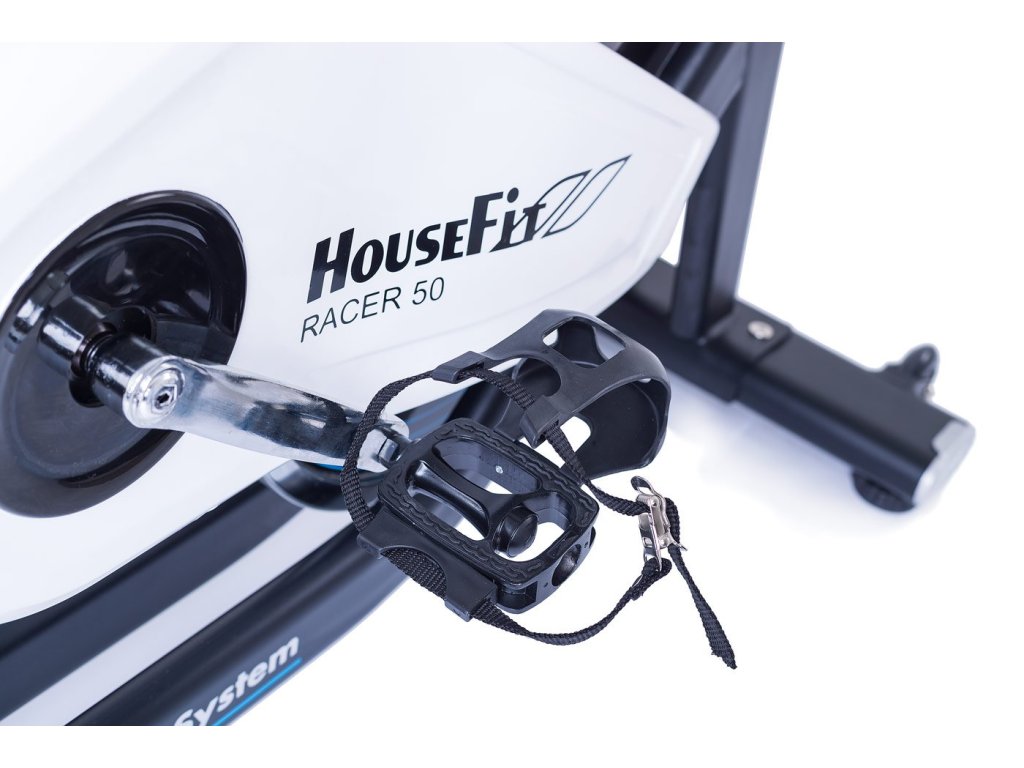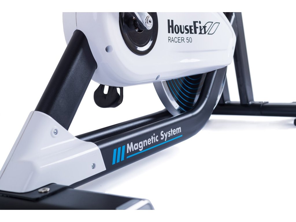 HOUSEFIT RACER 50 má magnetický brzdný systém, který je ovládán manuálním otočným regulátorem s dostatečnou variabilitou odporu. Díky setrvačníku o hmotnosti 14 kg a moderní magnetické brzdě má HOUSEFIT RACER 50 komfortní, plynulý a naprosto tichý chod i při náročném tréninku.