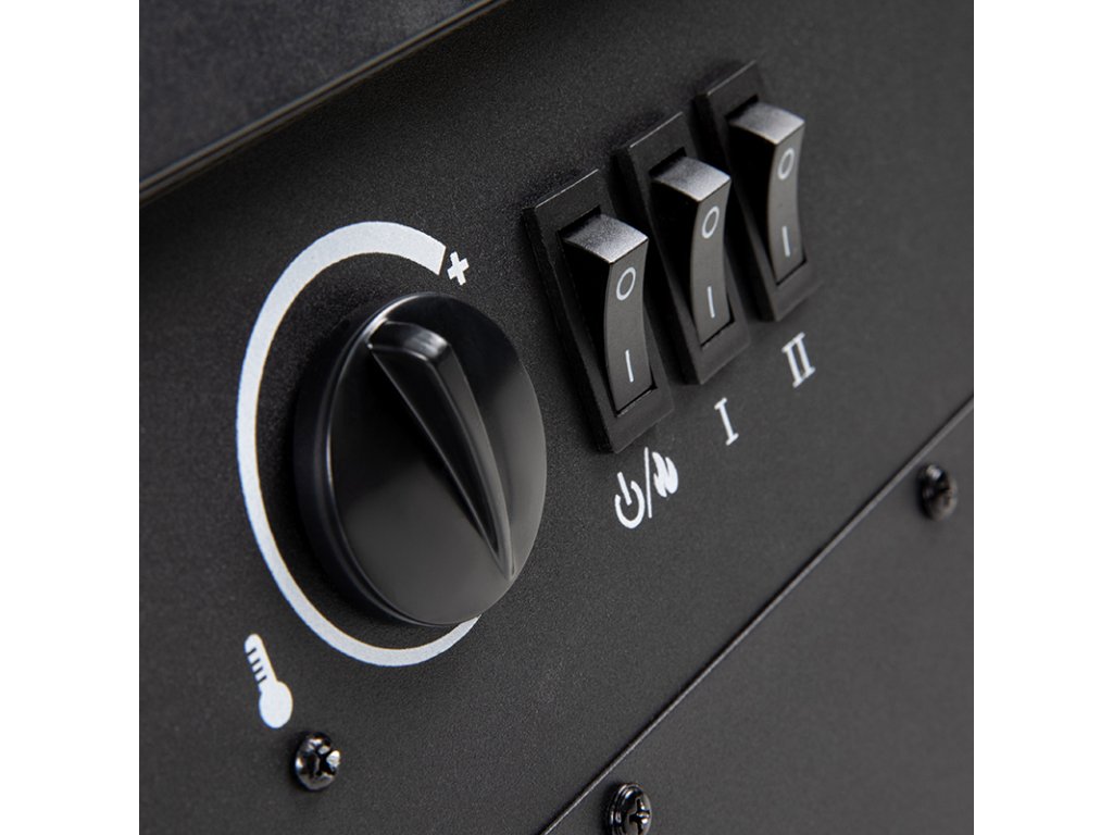 Elektrický krb bez problémů vytopí až 30 m2. Intenzitu plynule určujte pomocí otočného ovladače: Pro teplý proud vzduchu přesně tak, jak to máte rádi!