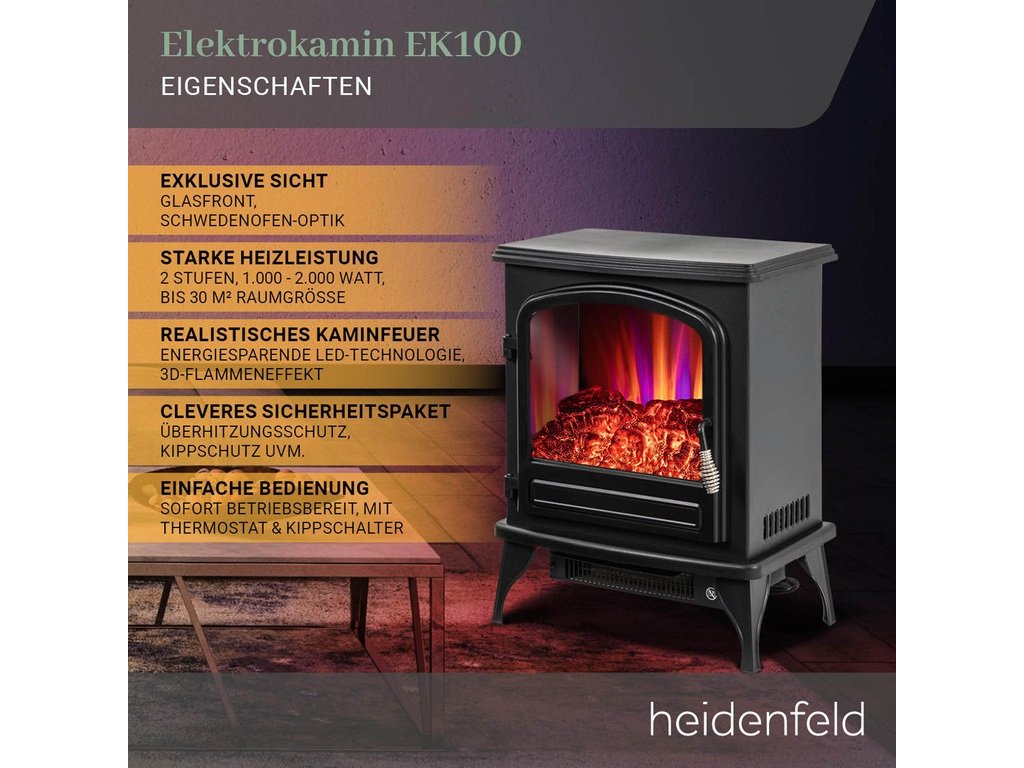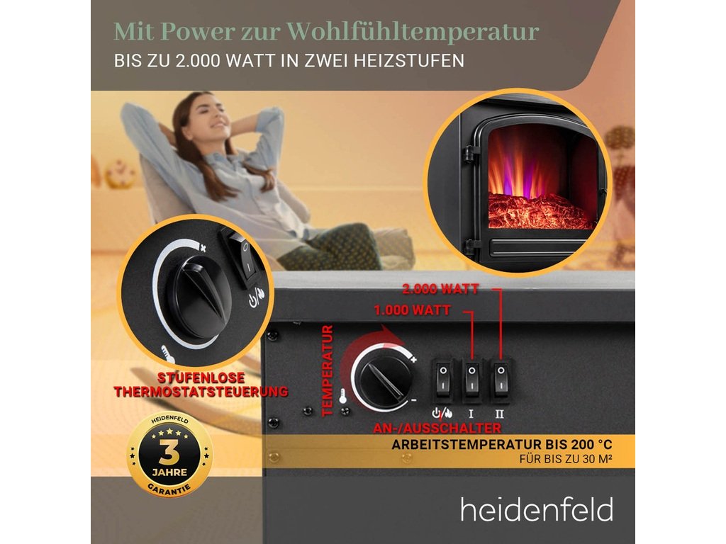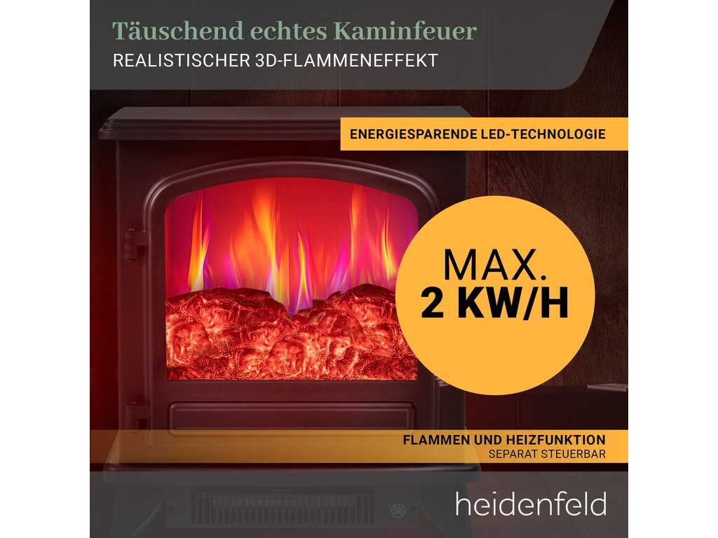 Ke skutečnému otevřenému ohni patří také příjemně hřejivý pocit. Ale jak dobře vytápějí elektrické krby? Elektrický krb Heidenfeld EK100 zaujme dvěma stupni vytápění. V závislosti na individuálních potřebách dodává teplo o výkonu až 1000 wattů nebo 2000 wattů. Během tohoto procesu vznikají teploty mezi 10 °C a 30 °C.