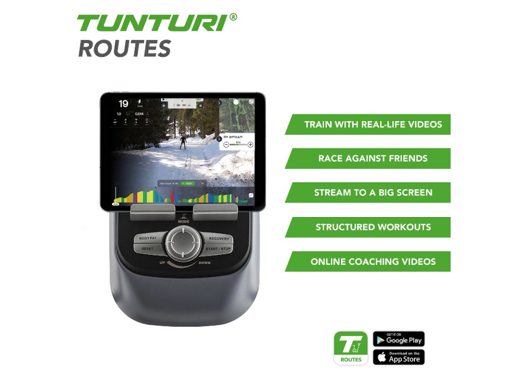 Trenažér TUNTURI Performance C55 F lze propojit přes systém BLUETOOTH s tabletem nebo chytrým telefonem a rozšířit tréninkové možnosti s aplikacemi Tunturi Routes, iConsole+, Kinomap, které vám umožní využívat zcela nové možnosti a zábavu v oblasti domácího tréninku!