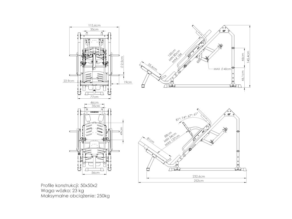 - rozměry konstrukce (d x š x v): 252 x 115,6 x 145,4 cm