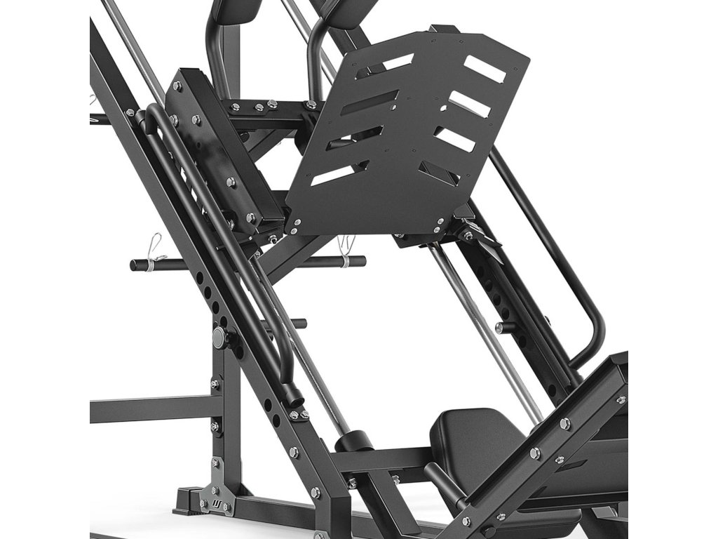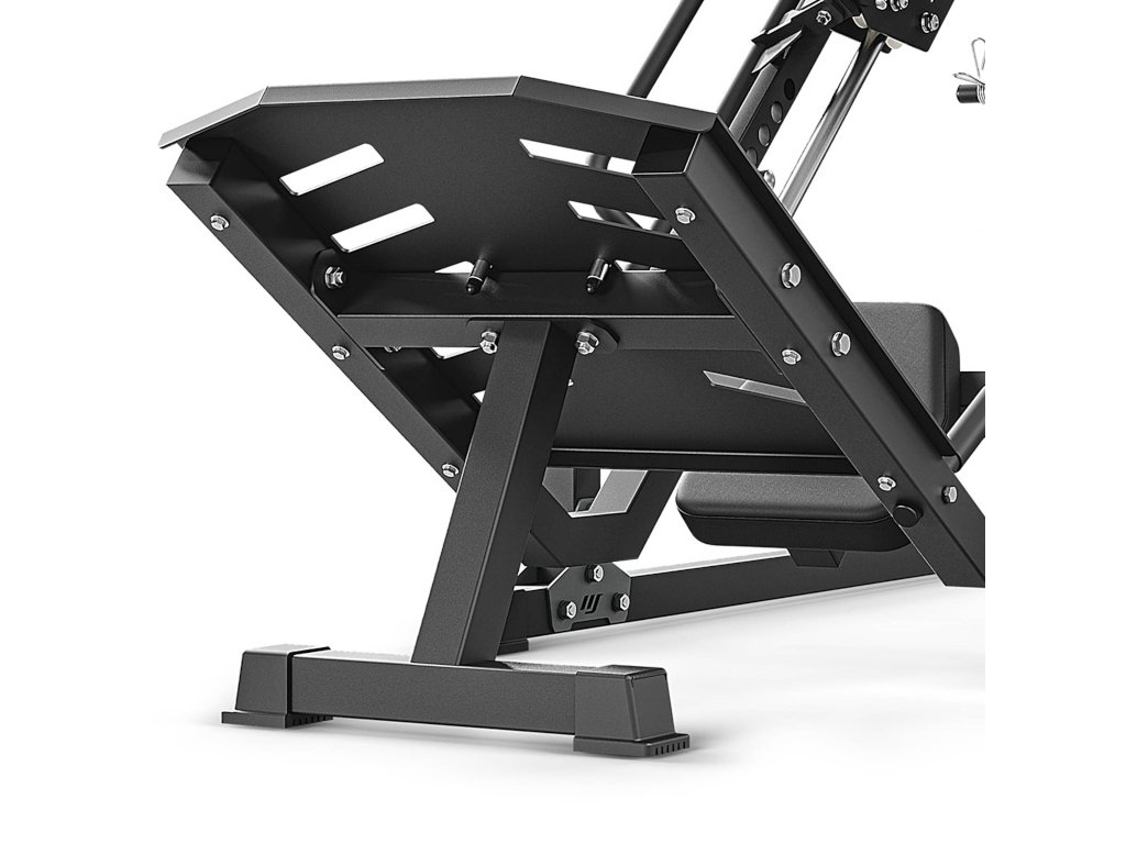 Cvičení na tlak zahrnuje tlačení závaží nohama, čímž se zapojuje mnoho svalových skupin současně. Díky dvěma možným konfiguracím stroje, které umožňují dřepy a tlaky, na něm můžete provádět komplexní trénink nohou.