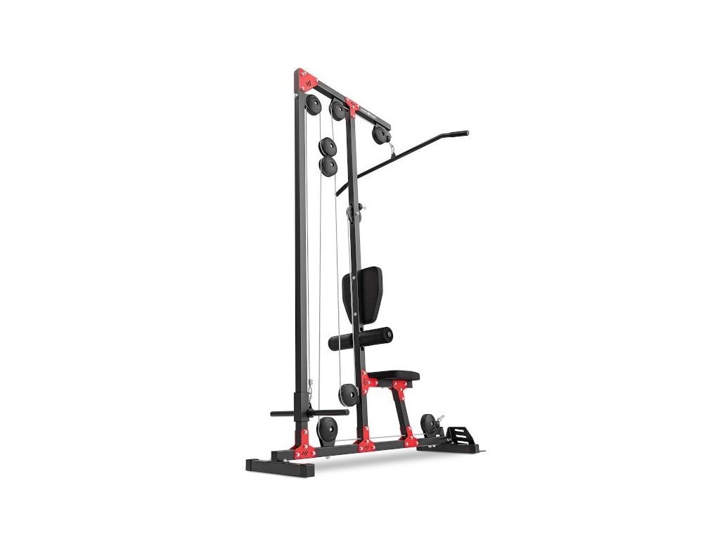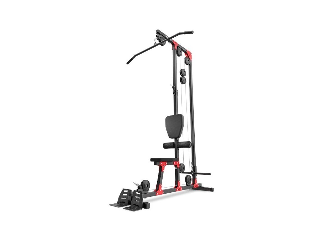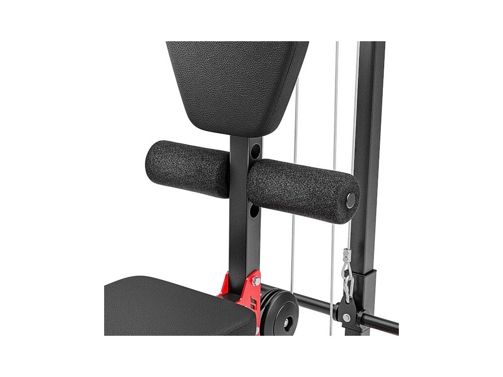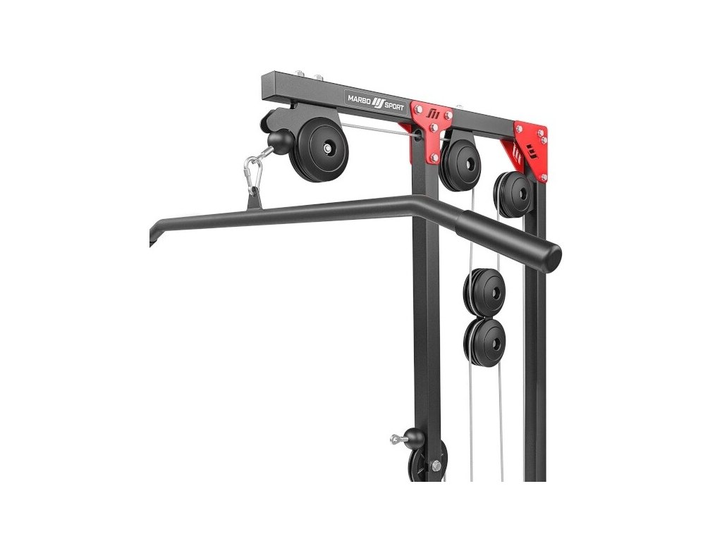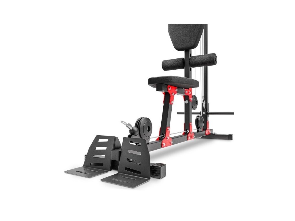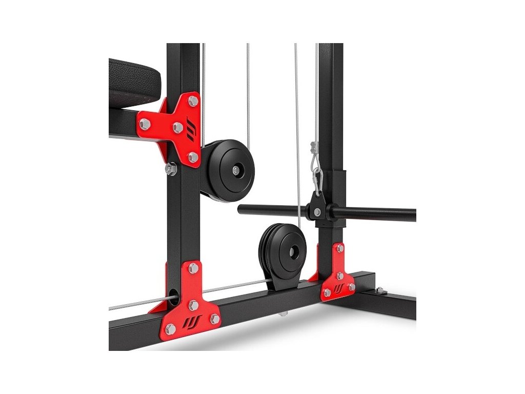 Důmyslný systém posilování sestává z 9 kladek s kuličkovými ložisky a 2 ocelových lan s gumovými zarážkami. Díky vzájemnému propojení lan má MH-W106 2.0 jen jedno místo pro závaží, a to v zadní části konstrukce, vybavené dvěma hroty o průměru 25 mm.