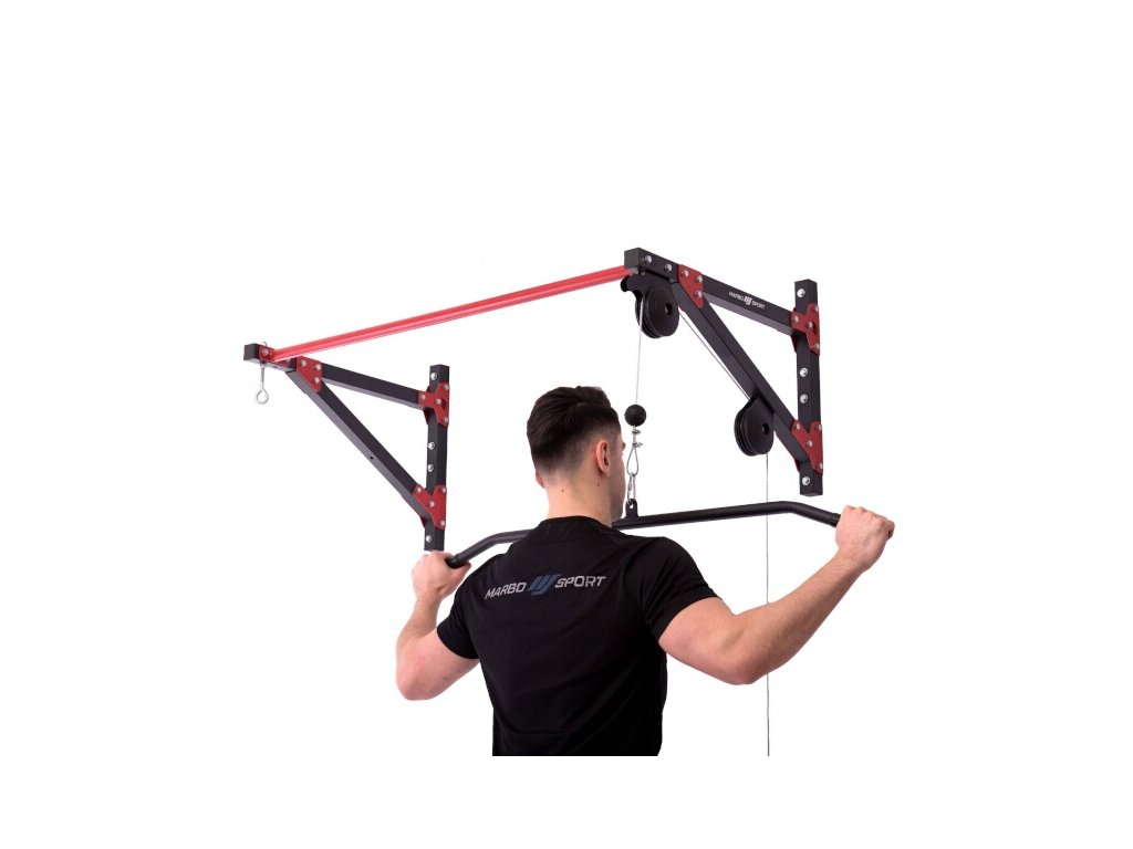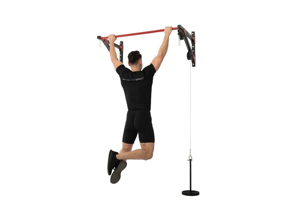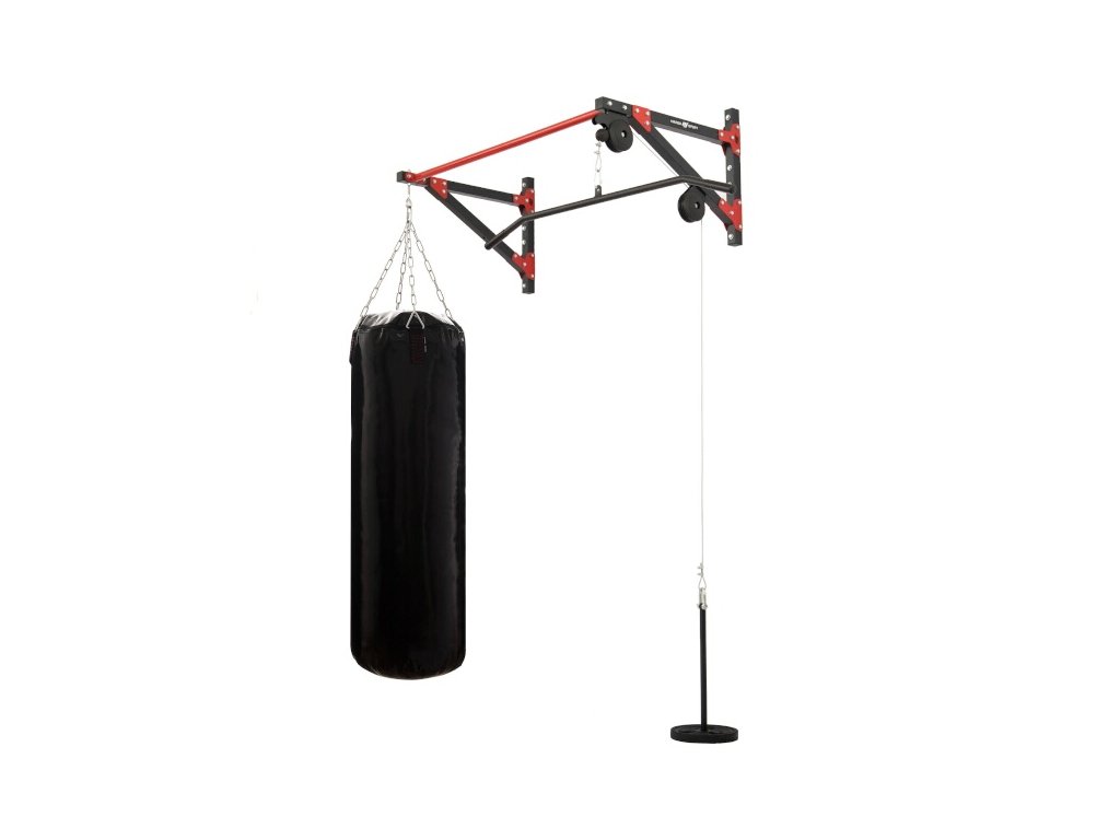 Hrazda obsahuje rovnou tyč o délce 120 cm, přítahovou tyč na lať a otočný držák na boxovací pytel.