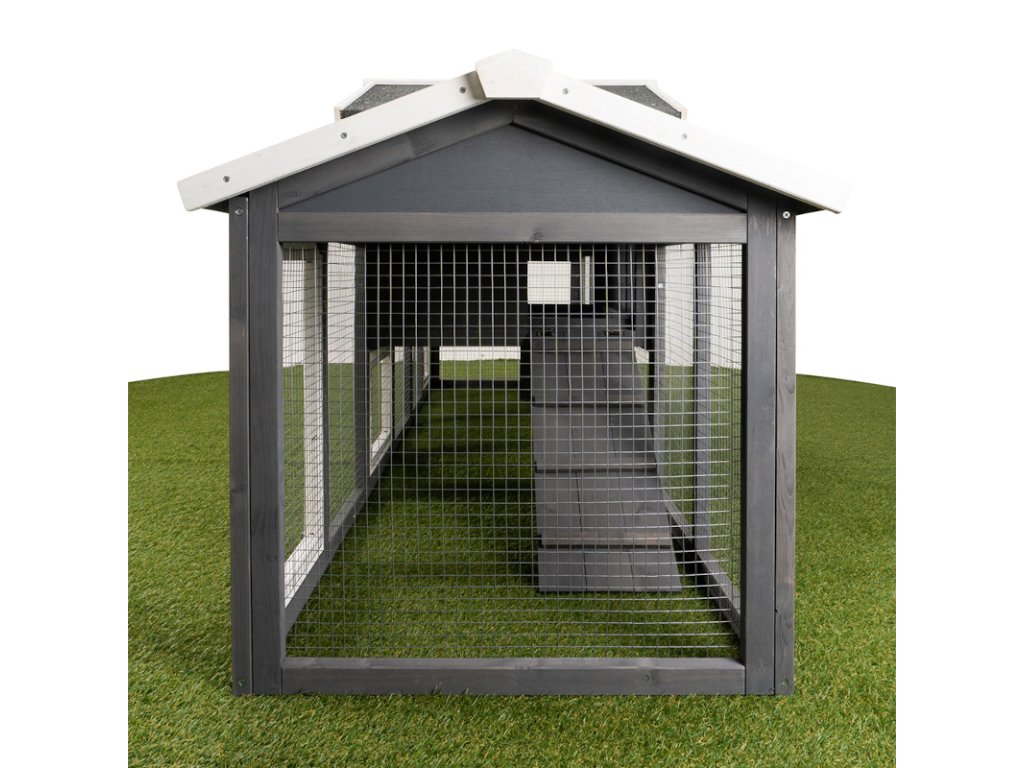 I králíci potřebují pohyb a nejlépe venku. Tady mohou jíst podle potřeby a volně se pohybovat. Králíkárna je dvoupatrová a nabízí chráněné kouty. Máte tedy možnost chovat i několik králíků, kteří zde najdou dostatek místa a mohou se parádně rozvíjet. Pomocí několika jednoduchých kroků lze zajíčky nejen nakrmit, ale také provést potřebné čištění. Na čisté zpracování kvalitních materiálů se můžete spolehnout – přesvědčte se sami.