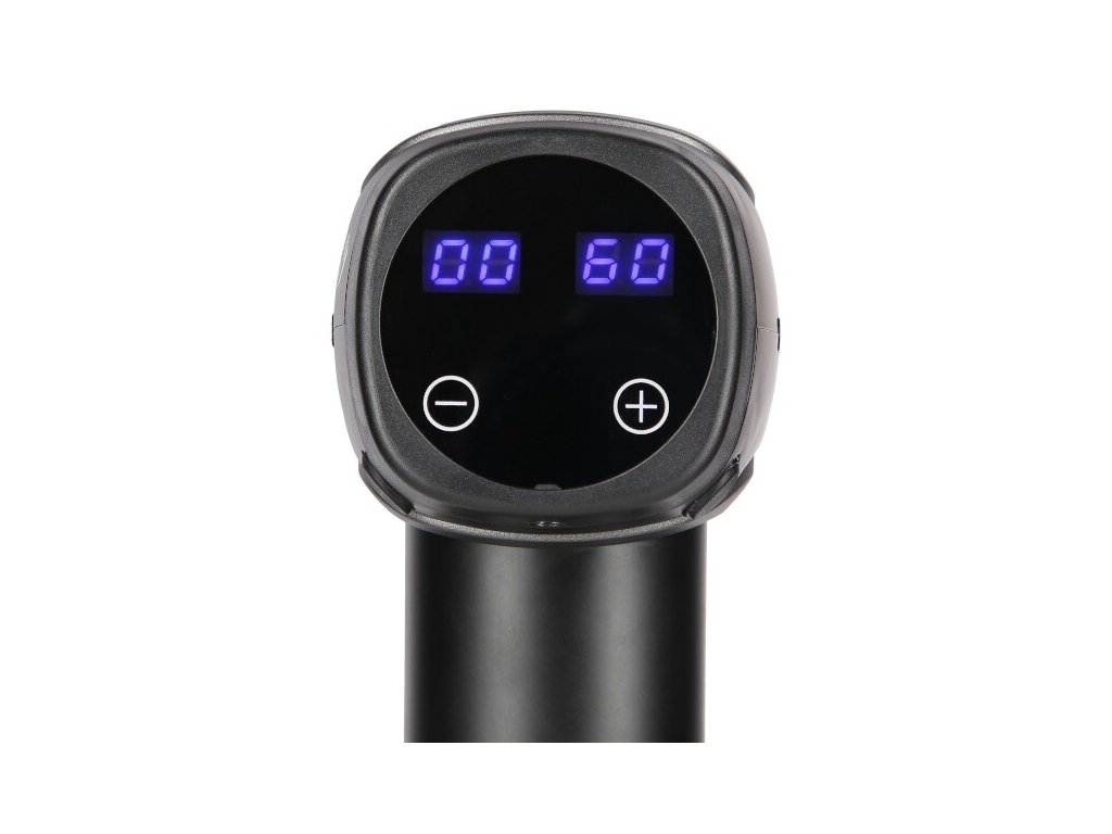 Masážní přístroj PDM3125 má 6 rychlostí masáže, kdy na nejvyšší stupeň provede hlavice až 3200 kmitů za minutu. Na zadní straně přístroje se nachází panel s tlačítkem pro změnu rychlosti a přehledný LCD displej, který zobrazuje zvolenou rychlost a úroveň nabití akumulátoru, ten při plném nabití zajistí až 180 minut masáže. Na spodní straně najdeme posuvný přepínač pro vypnutí přístroje a konektor pro připojení nabíjecího adaptéru.