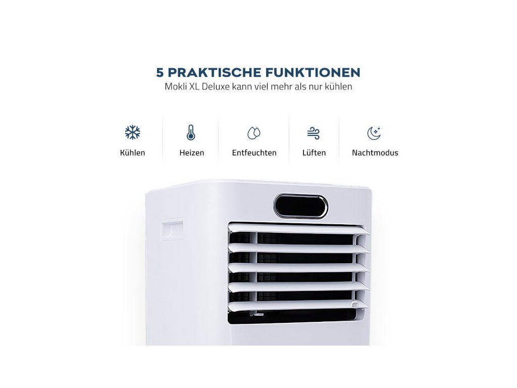 V horkých létech se příjemně chladné místnosti stávají dokonalým útočištěm. Nová klimatizace Mokli DELUXE XL Vám umožní snadno dosáhnout ideální teploty v jakékoli místnosti. Přístroj je vysoce efektivní a energeticky úsporný.