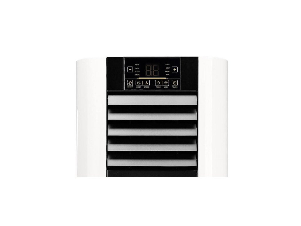 Díky pohyblivým kolečkům je zařízení snadno přesouvatelné, takže je vždy připraveno k použití tam, kde je nejvíce zapotřebí. Flexibilní hadice na vyfukovaný vzduch se přizpůsobí svému prostředí. Klimatizace je vybavena funkcí odvlhčování a časovačem, což umožňuje inteligentní regulaci teploty i během noci. Integrované filtry zabezpečují čištění vzduchu.