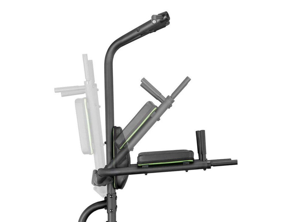 Nastavitelné opěrky rukou: Opěrky jsou sklopné, což šetří místo, když Power Tower nepoužíváš.