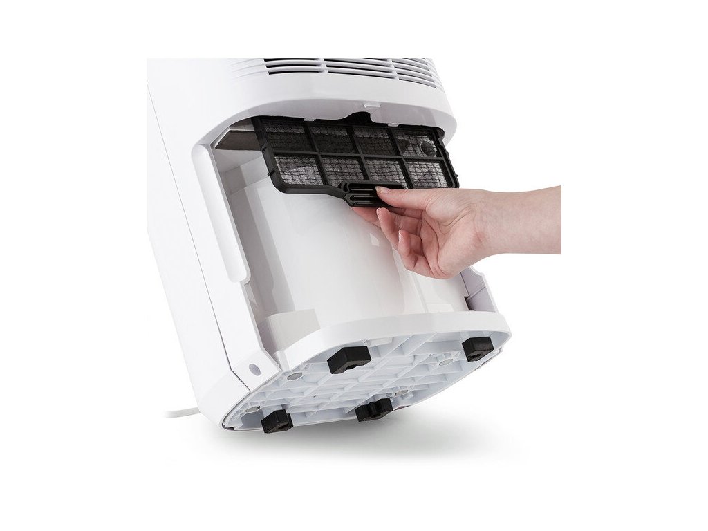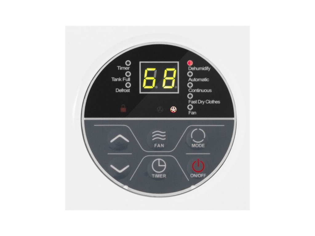 - Automatické odvlhčování řízené hygrostatem s výběrem cíle mezi 30 a 80% relativní vlhkosti