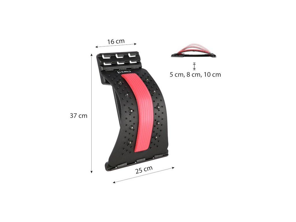 Zařízení má měkkou pěnovou podložku, která chrání a zajišťuje páteř během natahování. Maximální zatížení uživatele je 100 kg.