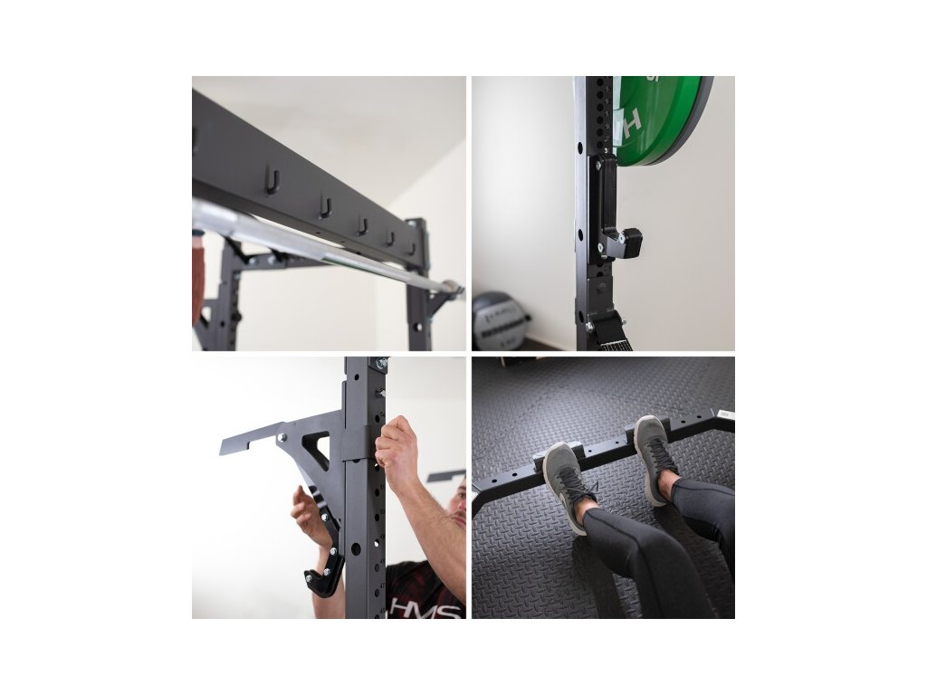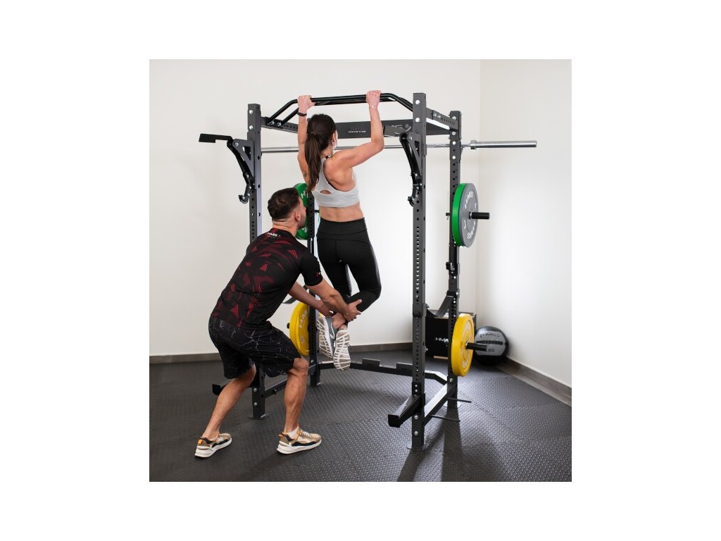 KLT3110 má mnoho funkcí a nastavení, díky kterým je univerzální a přizpůsobitelný. Můžete na něm provádět různé cviky, jako například přítahy, dřepy s činkou, tlak na lavičce, mrtvé tahy a mnohé další. Klec vám také umožňuje doplnit trénink pomocí odporových pásů, které lze připevnit ke speciálním tyčím.