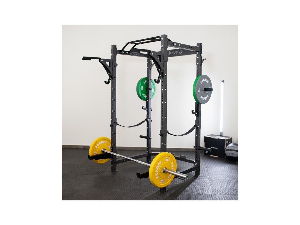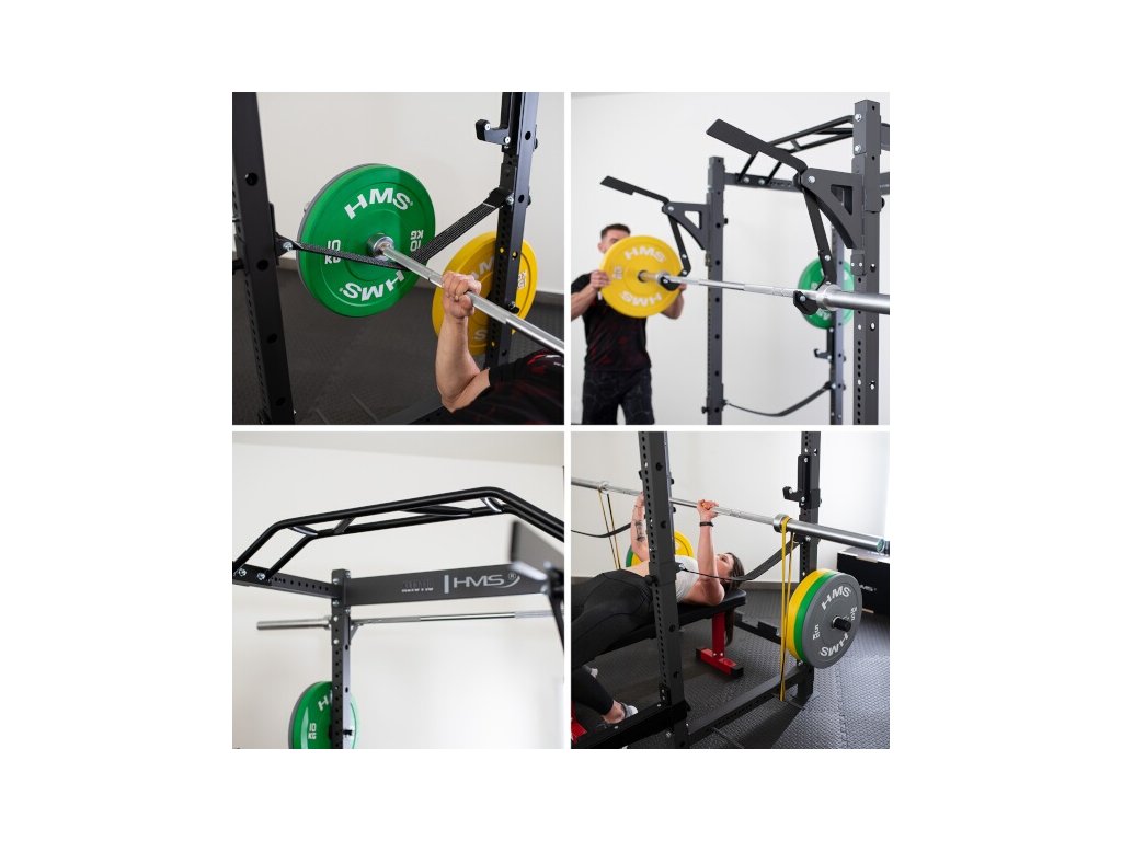 Monolift, který umožňuje provádět dřepy s činkou bezpečným a pohodlným způsobem.