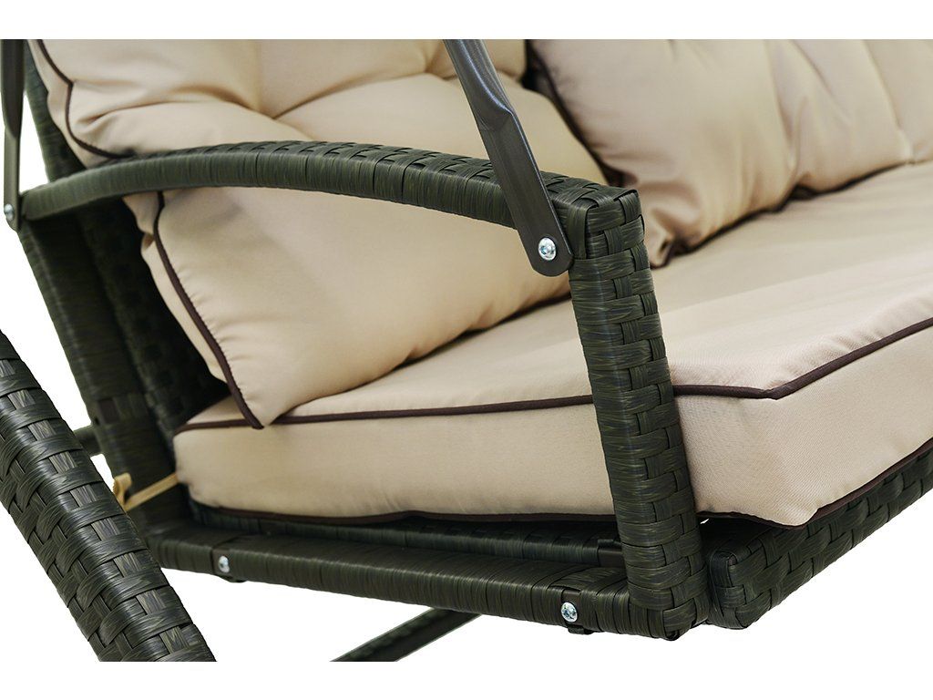 Ratanová houpačka DUVLAN Benita vás zaujme kvalitním a pevnou konstrukcí a moderním vzhledem. Je vyrobena z ocelové konstrukce a umělého ratanu. Ratanový nábytek je velmi snadné údržbě, vyznačuje se pevností a nadčasovým vzhledem. Pohodlí a dokonalý relax vám zaručí měkká poduška a polštáře. Stříška houpačky vám posyktne ochranu před slunečním zářením. Užijte si příjemně chvíle během letních dnů na vaší zahradě.