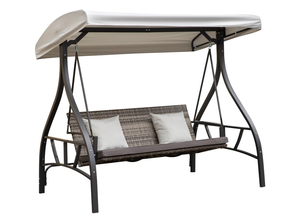 Součástí balení je komplet celá houpačka se stříškou, sedákem a dvěma polštáři.