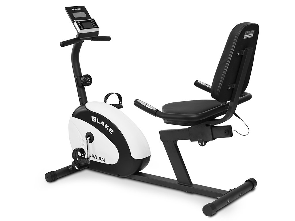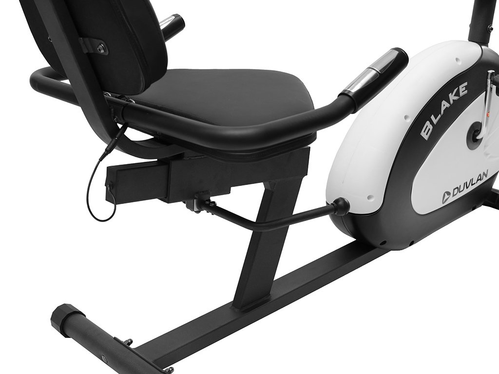 Recumbent ve stylovém černobílém designu je praktický a lehký stroj. Díky zádové opěrce je šetrný k Vaší páteři. Můžete si vybrat až z 8 tréninkových stupňů zátěže. Sedlo s horizontálním posuvem se přizpůsobí Vaší postavě a umožňuje pohodlný nástup, což ocení hlavně starší lidé. Recumbent DUVLAN Blake je správná volba pro ty, co upřednostňují komfortní trénink v pohodlí domova.