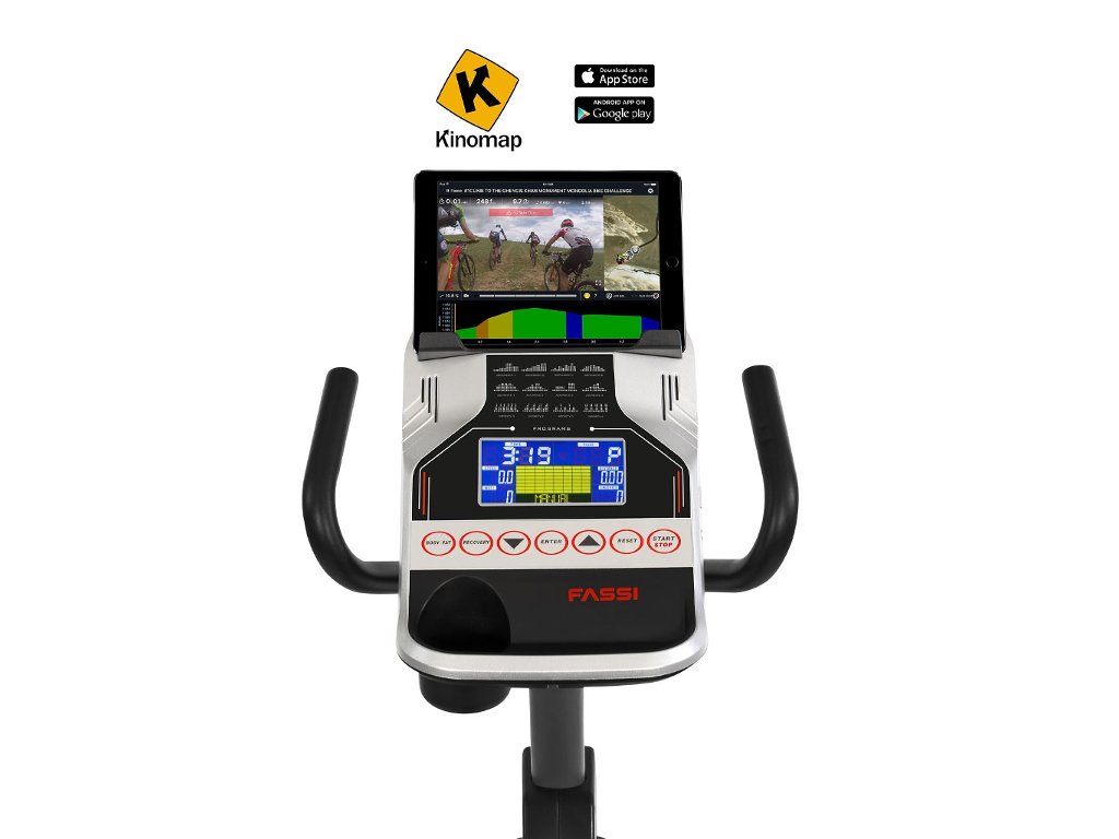 Elegantní, pohodlný, výkonný a tichý. To je nový Recumbent Fassi FR 350. Recumbent kombinuje profesionalitu a inovativní design s jedinečným počítačem. Velký dvoubarevný podsvícený LCD display vám umožní snadno číst základní hodnoty vašeho tréninku. Elektromagnetické nastavení zátěže na 32 úrovních spolu s integrovaným Bluetooth a aplikací Kinomap APP vám nabídnou jedinečný pocit při tréninku. Počítač je kompatibilní s bezdrátovým srdečním přijímačem Polar, který lze připojit k srdečnímu pásu, mp3 a reproduktoru, USB nabíječkou. Robustní a elegantní díky nastavitelnému sedadlu. Je vhodný pro jakoukoliv výšku a pro uživatele s hmotností až 150 kg.