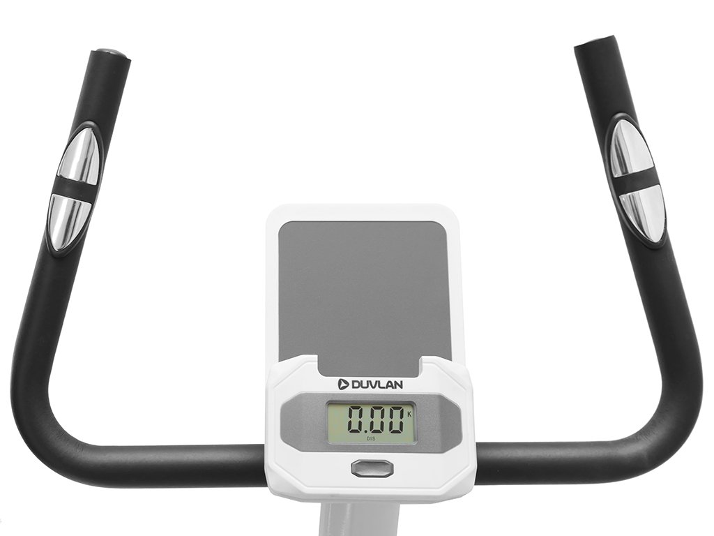 Rotoped DUVLAN Zenon je vybaven 3 kg setrvačníkem a displejem zobrazujícím všechny potřebné tréninkové údaje jako jsou srdeční tep, rychlost, čas, vzdálenost a spálené kalorie. Na počítač můžete umístit mobil nebo tablet a vaše cvičení tak bude ještě zábavnější. Díky svým komapktným rozměrům je vhodný i do menších místností. Přesouvání z jednoho místa na druhé je možné díky transportním kolečkům.