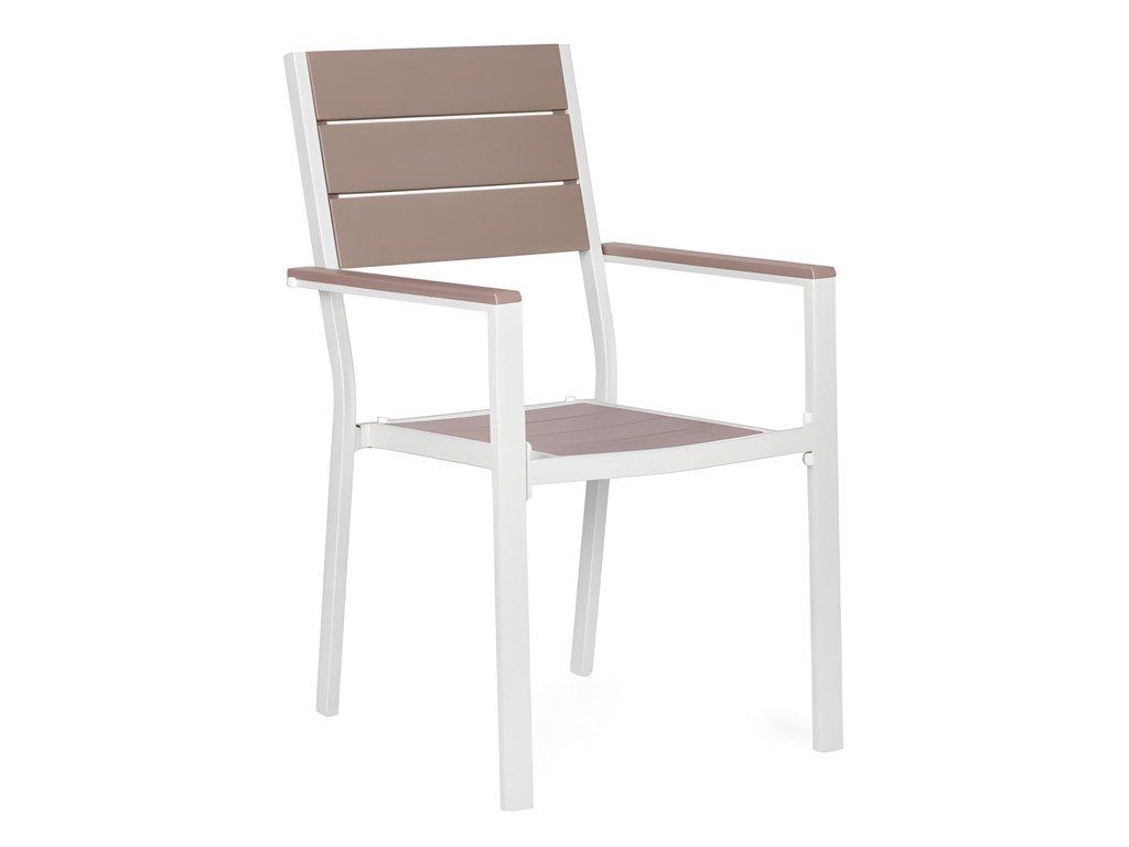 Souprava se skládá ze dvou židlí se stabilní konstrukcí vyrobenou z práškově lakované oceli odolné vůči korozi. Použitý materiál zaručuje vysokou odolnost vůči vlhkosti a měnícím se povětrnostním podmínkám. Sedák a opěradlo jsou vyrobeny z HDPE plastu se strukturou inspirovanou přírodním dřevem, čímž se pojí estetika s funkčností. Materiál je odolný vůči povětrnostním podmínkám, nevyžaduje impregnaci ani dodatečnou údržbu a snadno se udržuje v čistotě. Židle se vyznačují širokými sedadly, ergonomicky tvarovanými opěradly a stabilními područkami, což zajišťuje pohodlnou a bezpečnou oporu během používání. Maximální nosnost: 150 kg.