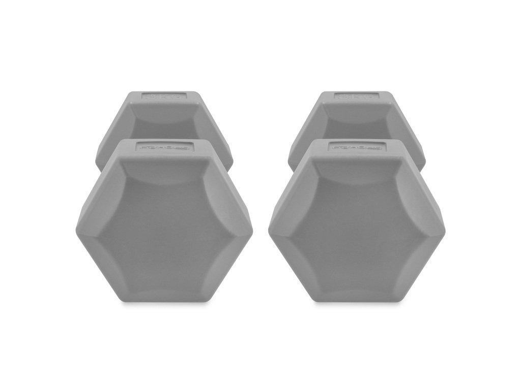 Šestihranný tvar zaručuje stabilitu, zabraňuje pohybu činek po podlaze a umožňuje bezpečný úchop při různých cvicích, jako jsou kliky nebo posilování rukou a bicepsů. Ergonomický design zaručuje pohodlné uchopení a kontrolovaný pohyb během tréninku.