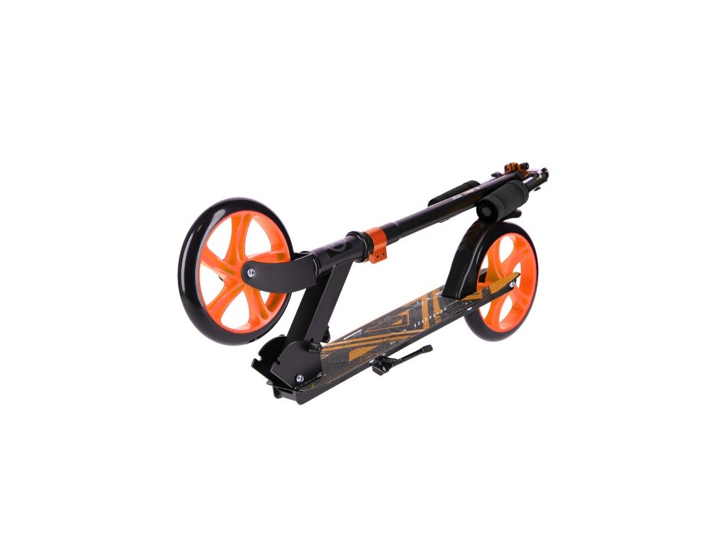 Zadní blatník slouží jako brzda. Řídítka lze při skládání sklopit a jsou vybavena gumovými rukojeťmi pro maximální pohodlí během jízdy. Výšku řídítek lze nastavit ve 3 úrovních od 79 do 103 cm.