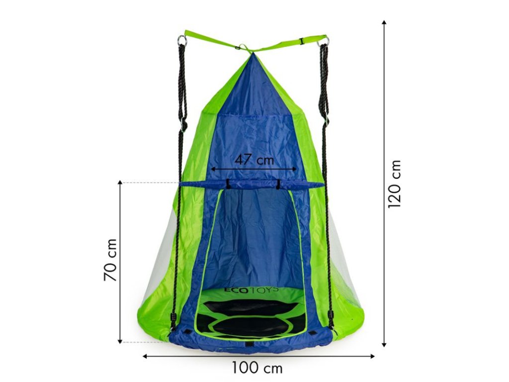 Stan je skvělým doplňkem pro Váš houpací kruh. Je vhodný pro houpací kruhy o průměru 100 cm. Díky tomuto doplňku se mohou děti ukrýt dovnitř přičemž stan obsahuje průhlednou síťku takže je budete mít přesto vždy na očích.