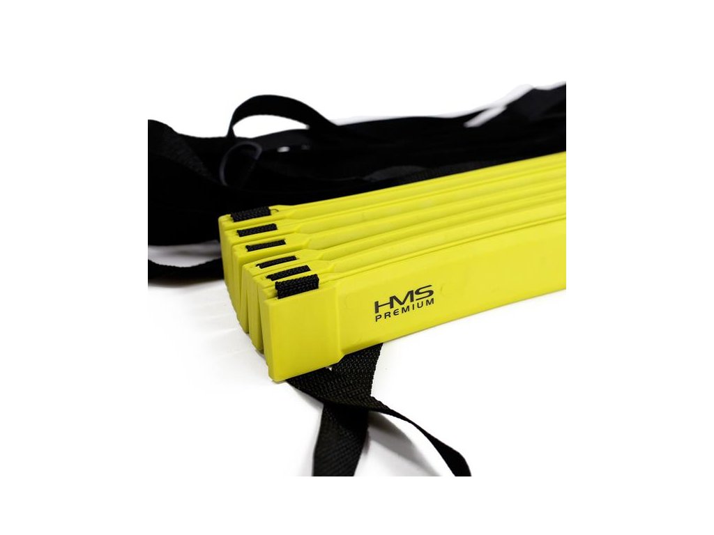 DK06 je pomůcka pro kondiční přípravu sportovců. Rozvíjí také rychlost, vytrvalost a koordinační schopnosti. Tréninkový žebřík HMS má 6 metrů a 12 nastavitelných příček, což je ideální poměr pro kvalitní trénink. DK06 je vhodný pro vnitřní prostory jako je posilovna, cvičební hala a jiné, ale i veškeré venkovní prostory. Součástí balení je i přenosný vak, takže můžete mít žebřík vždy po ruce.