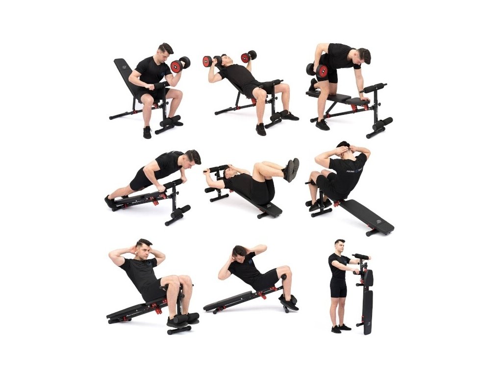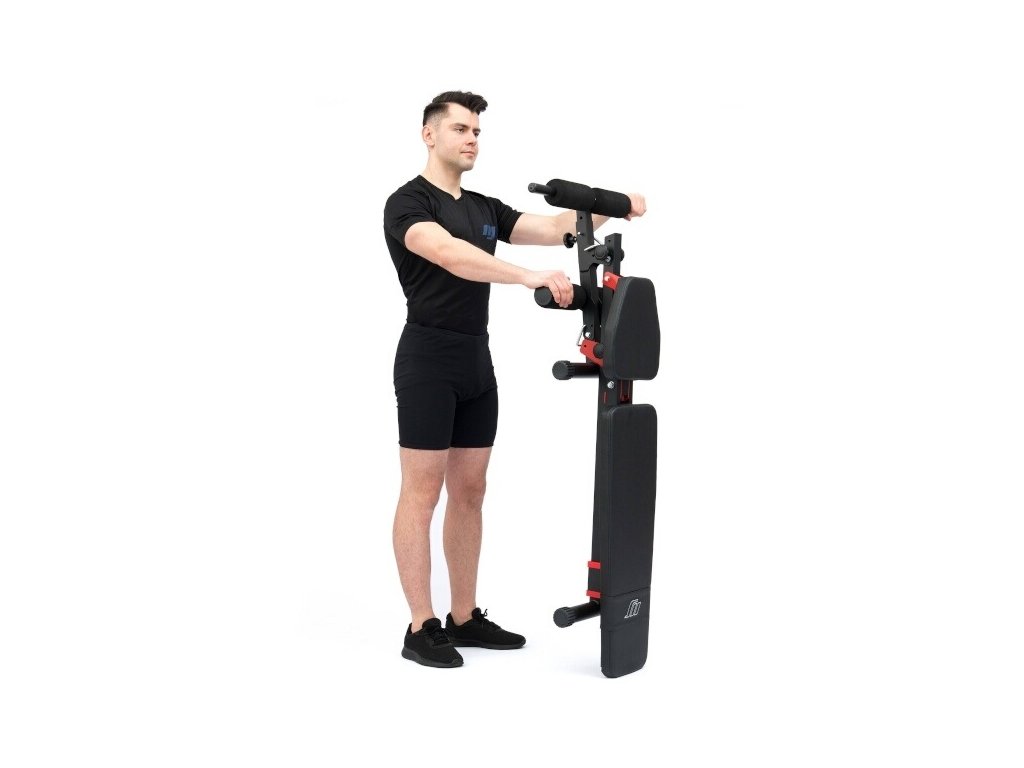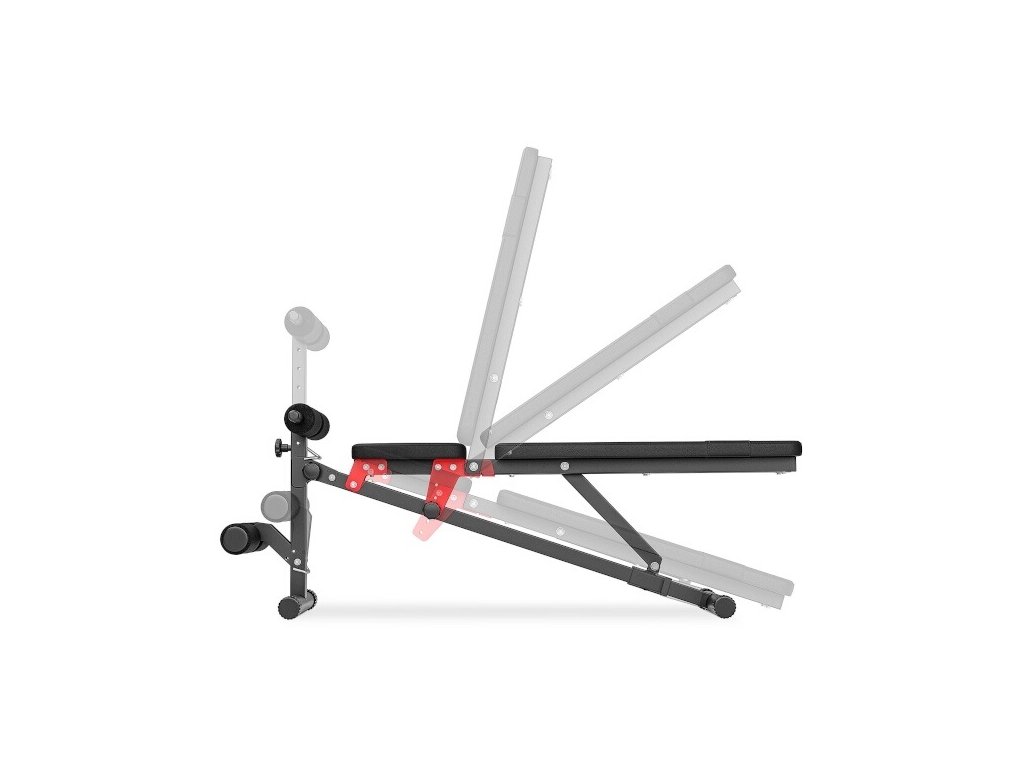 Operádlo lavice ide nastaviť do siedmich poloh v rozsahu od -19° do +78°, sedátko do troch poloh a horná časť adaptéra s držadlami je výškovo nastaviteľná do piatich poloh v rozsahu 55 - 75 cm od zeme, potom už záleží iba na Vás, či budete trénovať svaly brucha, alebo budete trénovať svaly brucha.