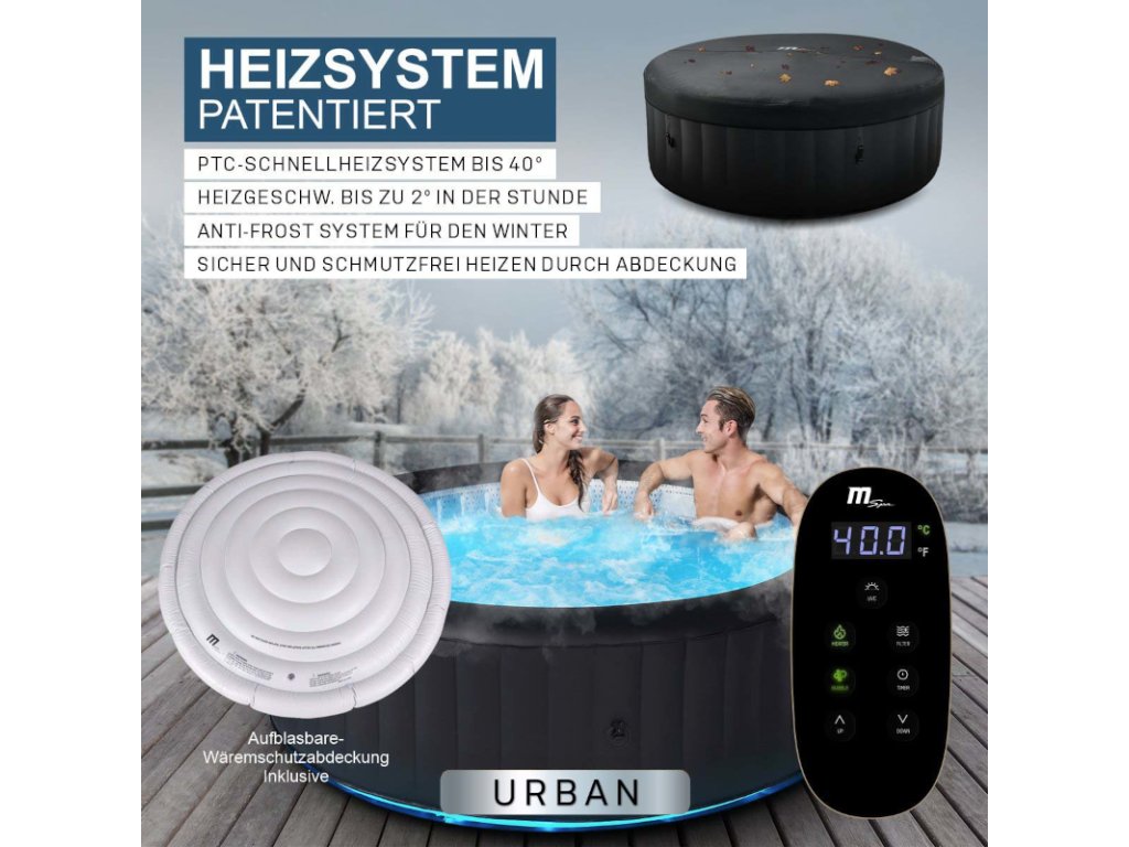 Vířivka je nafukovací. K nafouknutí stačí stisknout dvě tlačítka. Všechno ostatní se postará samo. Vířivka díky svému 360° bublinkovému systému se třemi stupni intenzity zaručuje maximální zábavu z koupání až pro šest osob; a nejen v létě. Se systémem rychlého ohřevu PTC můžete rychle ohřát vodu i v chladných dnech. Kombinovaná technologie generátoru ozonu a UV-C světla spolu s antibakteriální vnitřní výstelkou zajišťuje maximální hygienu.