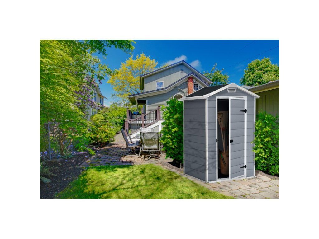 Bezúdržbový domek vyrobený z plastu ideální pro skladování nářadí na vaší zahradě. Nabízí praktické řešení úložného prostoru. Ventilační mřížka zabezpečuje přívod vzduchu a zabraňuje vlhnutí. Domek se vyznačuje kvalitou, dizajnem a stabilitou díky kovovým výztuži.