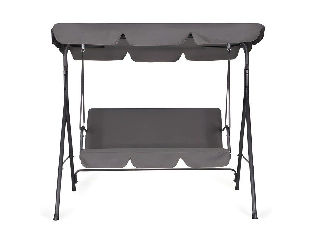 Tato zahradní houpačka je určena do zahrad, na terasy a zahrádky a poskytuje pohodlné místo k odpočinku pro tři osoby. Její odolný ocelový rám zajišťuje stabilitu a odolnost vůči každodennímu používání a povětrnostním podmínkám. Sedák a opěradlo jsou vyrobeny z oxfordské tkaniny 600D PVC, která je odolná vůči oděru, snadno se čistí a rychle schne. Pružiny poskytují dodatečné pohodlí a zajišťují plynulé houpání. Houpačka je vybavena nastavitelnou polyesterovou stříškou s gramáží 140 g/m² s ozdobným volánem, který chrání před sluncem a slabým deštěm. Protiskluzové podložky zlepšují stabilitu a chrání podlahu. Maximální nosnost je 260 kg.