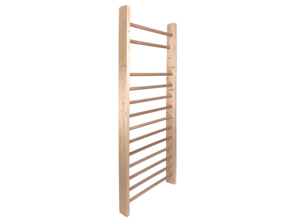 Pevná konstrukce z borového dřeva a tyče z bukového dřeva zvládnou zátěž až 200 kg. Žebřiny jsou vhodné pro domácí posilování, strečink i rehabilitační cvičení pro dospělé.